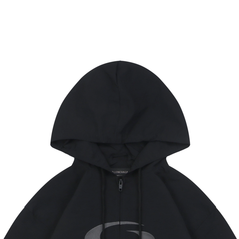 The hooded design enhances functionality, and the ergonomic cut allows unrestricted movement. Graphic elements are executed using a laser-cut appliqué and burn-out embroidery technique, delivering sharp definition and a refined layered effect. Finished with a custom dual-pull logo zipper and complete authentic trim details, this unisex jacket embodies a balance of utility, comfort, and high-impact design.