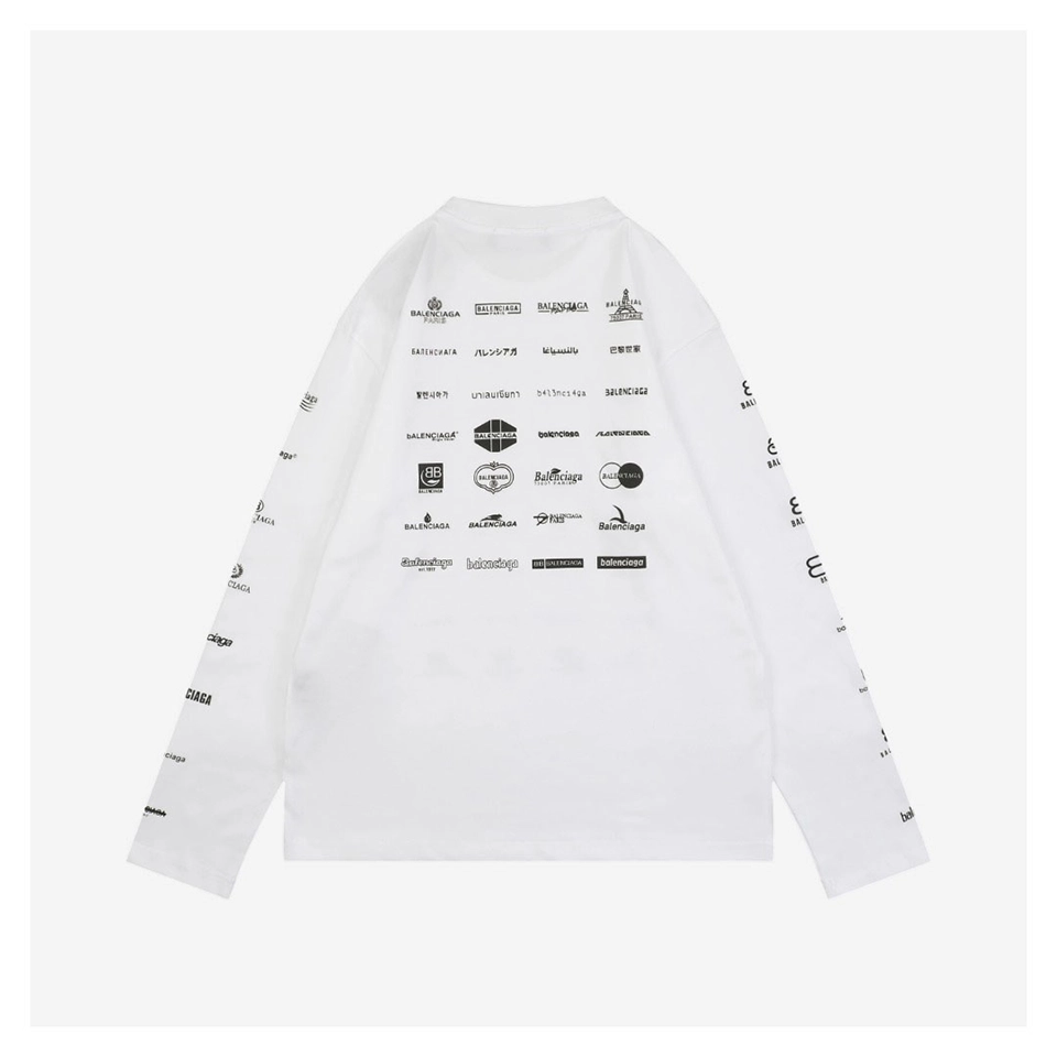 The Blcg Multilogo Graphic Shirt delivers bold visual impact with a collage of Blcg logos spanning multiple languages and typographic styles. Crafted from high-quality cotton, the shirt comes in both classic black and crisp white, offering a statement piece that blends minimalism from the front with maximalist branding on the back and sleeves. Its oversized silhouette and extended sleeves lend a relaxed yet striking aesthetic perfect for streetwear layering.