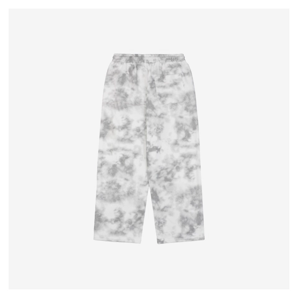 The Blcg Tie-Dye Embroidered Cola Logo Pants blend relaxed streetwear styling with premium craftsmanship. Featuring a distinctive cloudy tie-dye pattern across two muted colorways, these wide-leg pants are cut from soft fleece-backed cotton and equipped with a drawstring waistband and practical rear patch pocket. The subtle Blcg embroidery at the hip nods to vintage cola-inspired iconography, infusing the minimalist silhouette with retro flair.