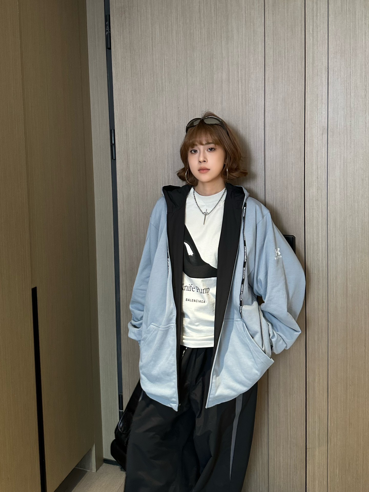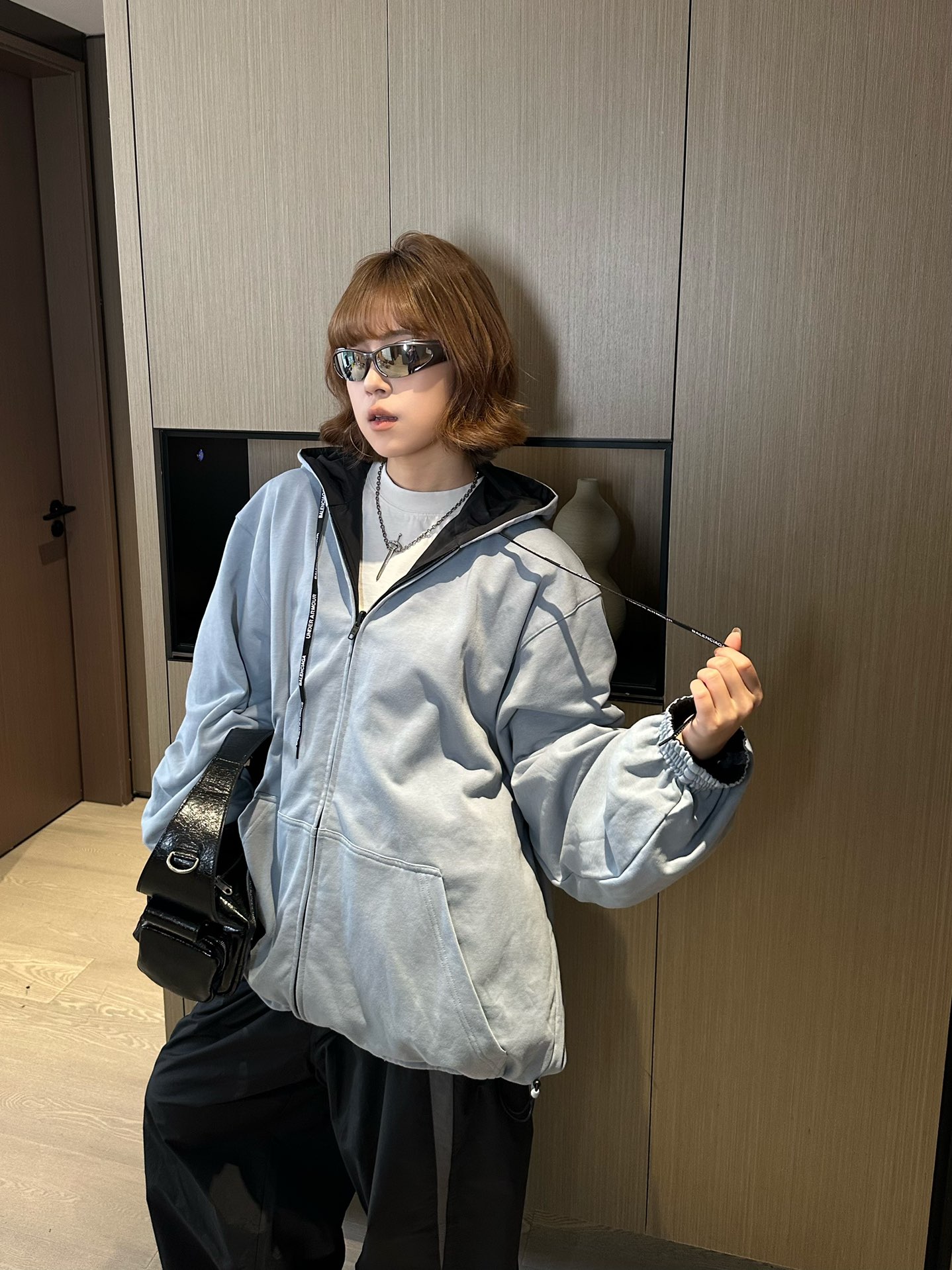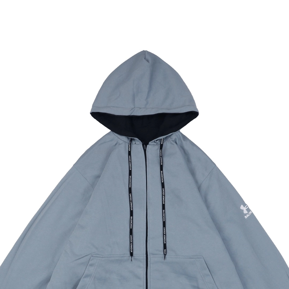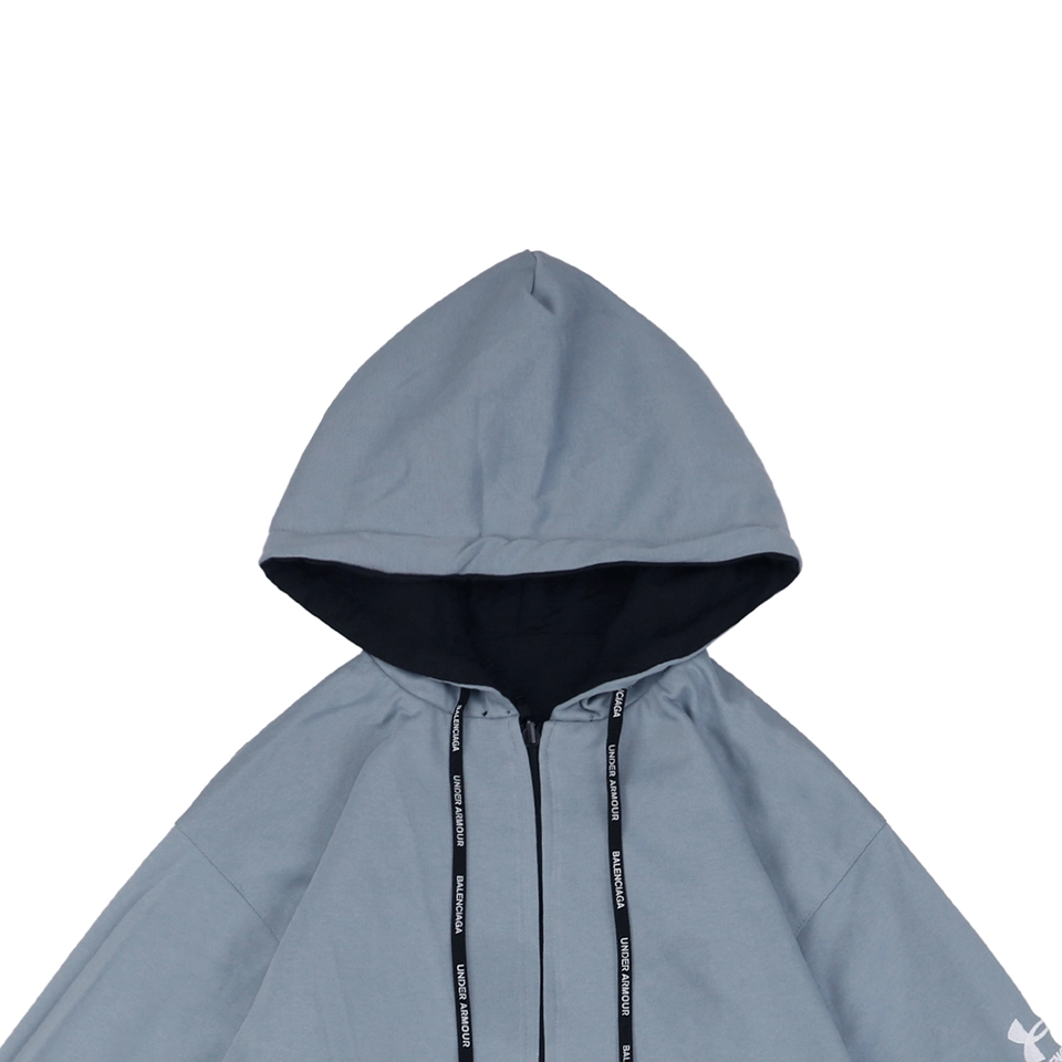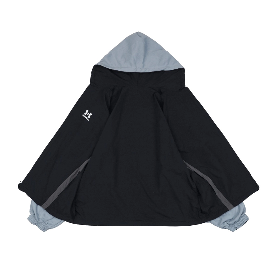 Crafted for versatility and street-ready appeal, the Blcg x UA Reversible Embroidered Logo Hooded Jacket showcases a unique fusion of performance styling and high-fashion detailing. One side features UA-inspired branding with technical grey contrast panels, while the reverse offers a minimalistic black silhouette. Subtle embroidery, premium zippers, and a soft-touch lining ensure both functionality and elevated street aesthetics.