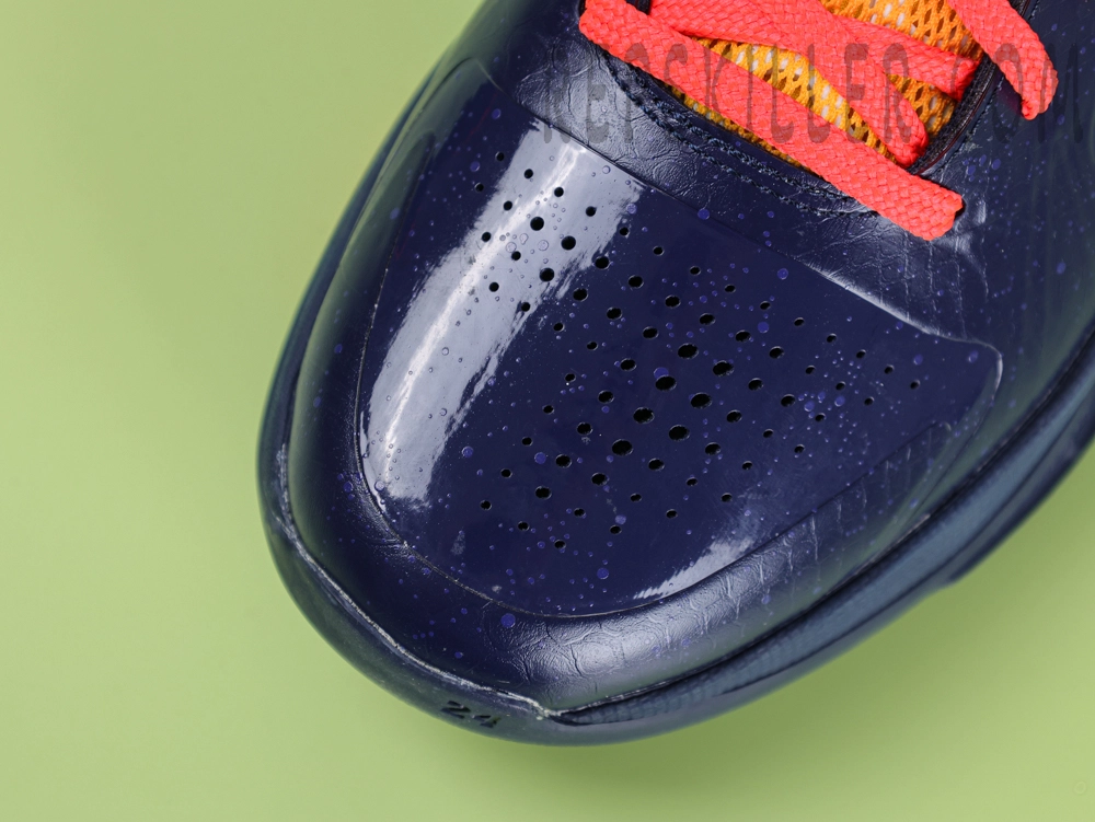 The Caitlin Clark x Nike Zoom Kobe 5 Protro ‘Indiana Fever’ pays tribute to the WNBA franchise with its bold team colors and performance-driven design. The Midnight Navy synthetic and mesh upper integrates Flywire technology for adaptive lockdown, while the gradient red-to-amber Swoosh mirrors the vibrant heel counter. A Cushlon midsole combines with forefoot Zoom Air for responsive cushioning, supported by a glass-based carbon fiber shank plate for enhanced stability. This Player Edition blends Kobe’s legacy of speed-oriented low-tops with Caitlin Clark’s signature court presence.