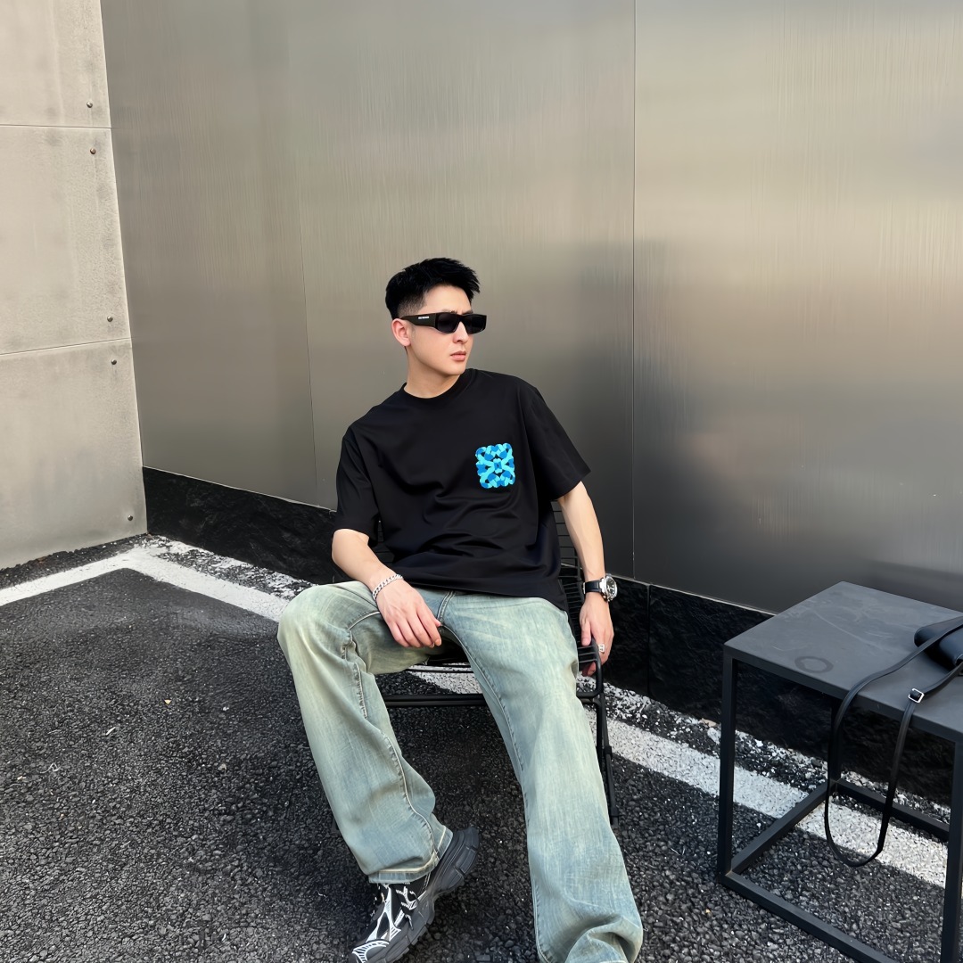 The L Color-Block Flower Emblem Chenille Embroidery T-Shirt reimagines the brand’s iconic floral logo with a playful twist of texture and color. Featuring a multi-color chenille embroidery, the raised fuzzy finish contrasts beautifully with the smooth cotton fabric, creating a tactile, visually engaging look. Crafted from soft, breathable cotton and cut in a relaxed fit, this tee delivers both high-end comfort and elevated street expression.