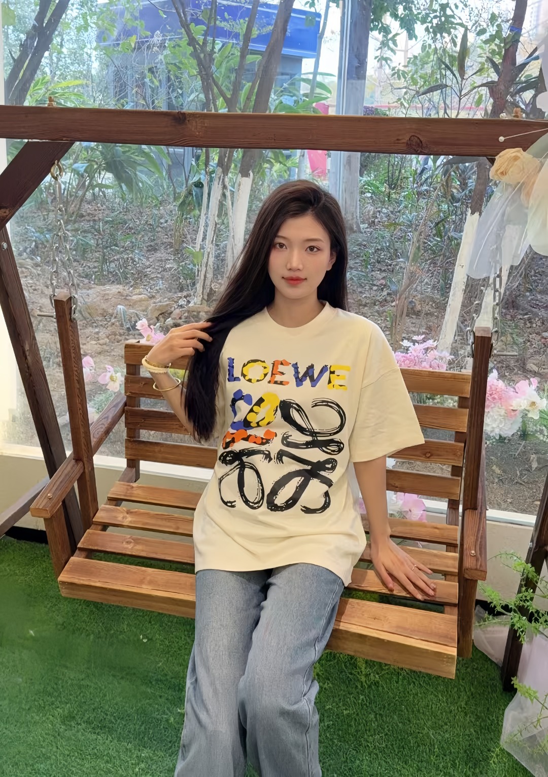 The L Colorful Graffiti Flower Emblem Print T-Shirt reimagines the brand’s signature flower motif through an expressive graffiti lens. Featuring a vibrant explosion of colors in a freeform spray-paint style, the print channels both street-art energy and luxury design sensibility. Crafted from soft, breathable cotton in an oversized silhouette, this tee perfectly blends creativity, comfort, and bold identity—a standout for those who wear art as attitude.