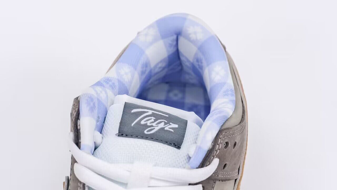 Unique to the Lobster series, the ‘Grey Lobster’ includes a checkered picnic blanket-themed inner lining, paying homage to the traditional New England clambakes where lobsters are often served. The shoe also features elastic bands around the forefoot, a nod to how lobster claws are secured to prevent them from snapping. These bands are not only an integral thematic detail but also enhance the fit of the shoe.
