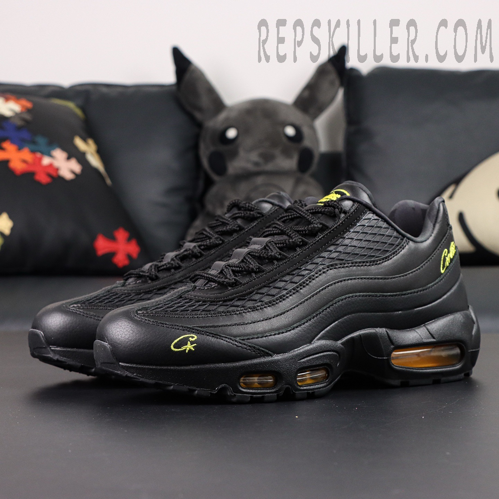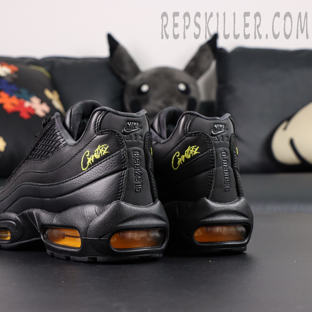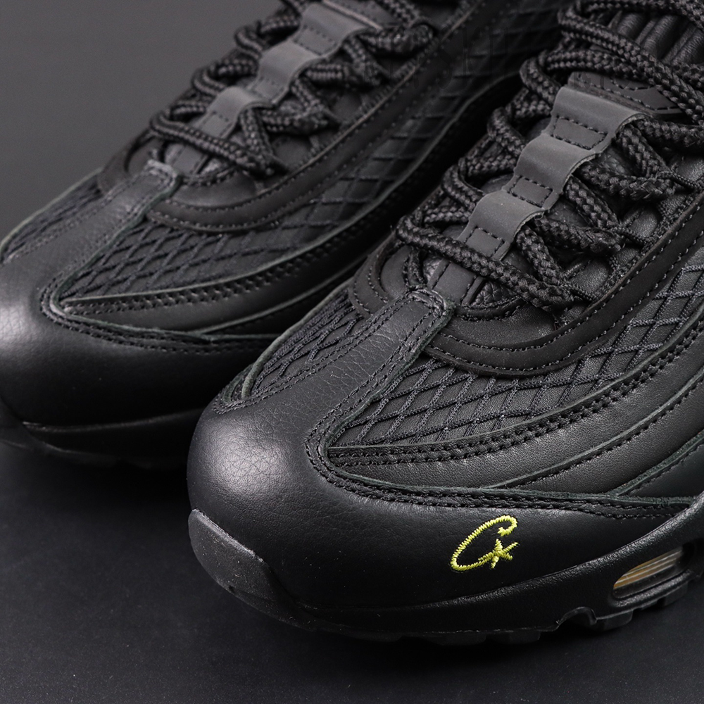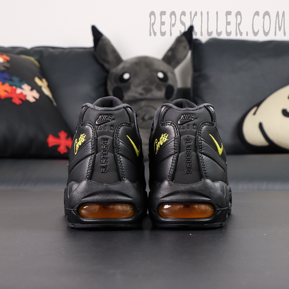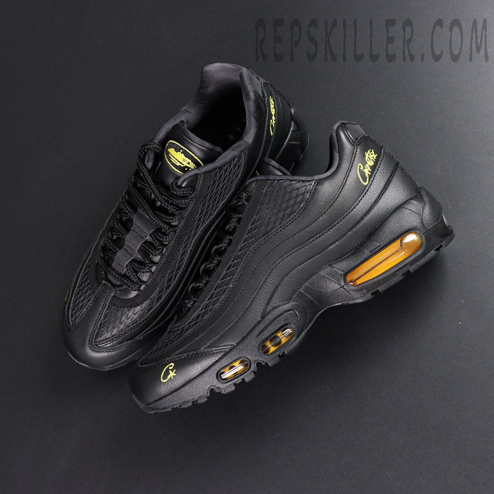 The Corteiz x Air Max 95 SP ‘Honey Blacks’ merges the gritty attitude of Corteiz streetwear with the iconic Nike Air Max lineage. This collaboration features an all-black upper composed of textured leather and mesh, delivering premium durability with breathable comfort. Vibrant yellow accents are applied to the visible Air Max cushioning units, tongue, and side branding, injecting contrast and energy into the stealthy base. The signature Corteiz Alcatraz logo is subtly embroidered near the toe and rear, enhancing exclusivity. Designed for impact, the sculpted midsole houses multiple Air units ensuring a responsive, cushioned stride, while the rugged outsole provides dependable grip.