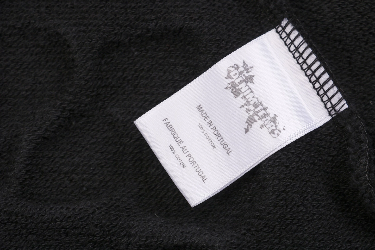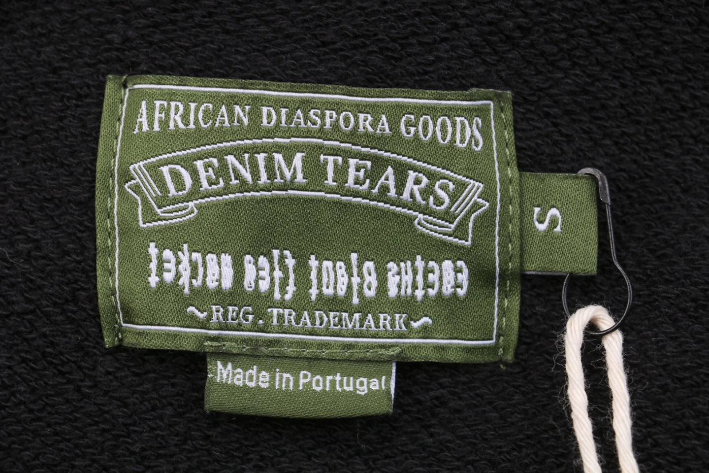 The off-white cotton motifs feature a textured surface rather than a smooth finish, adding depth and tactile richness to the design. Combined with the brand’s authentic short and boxy silhouette, the hoodie stays true to the original CPFM × Denim Tears proportions without modification.
