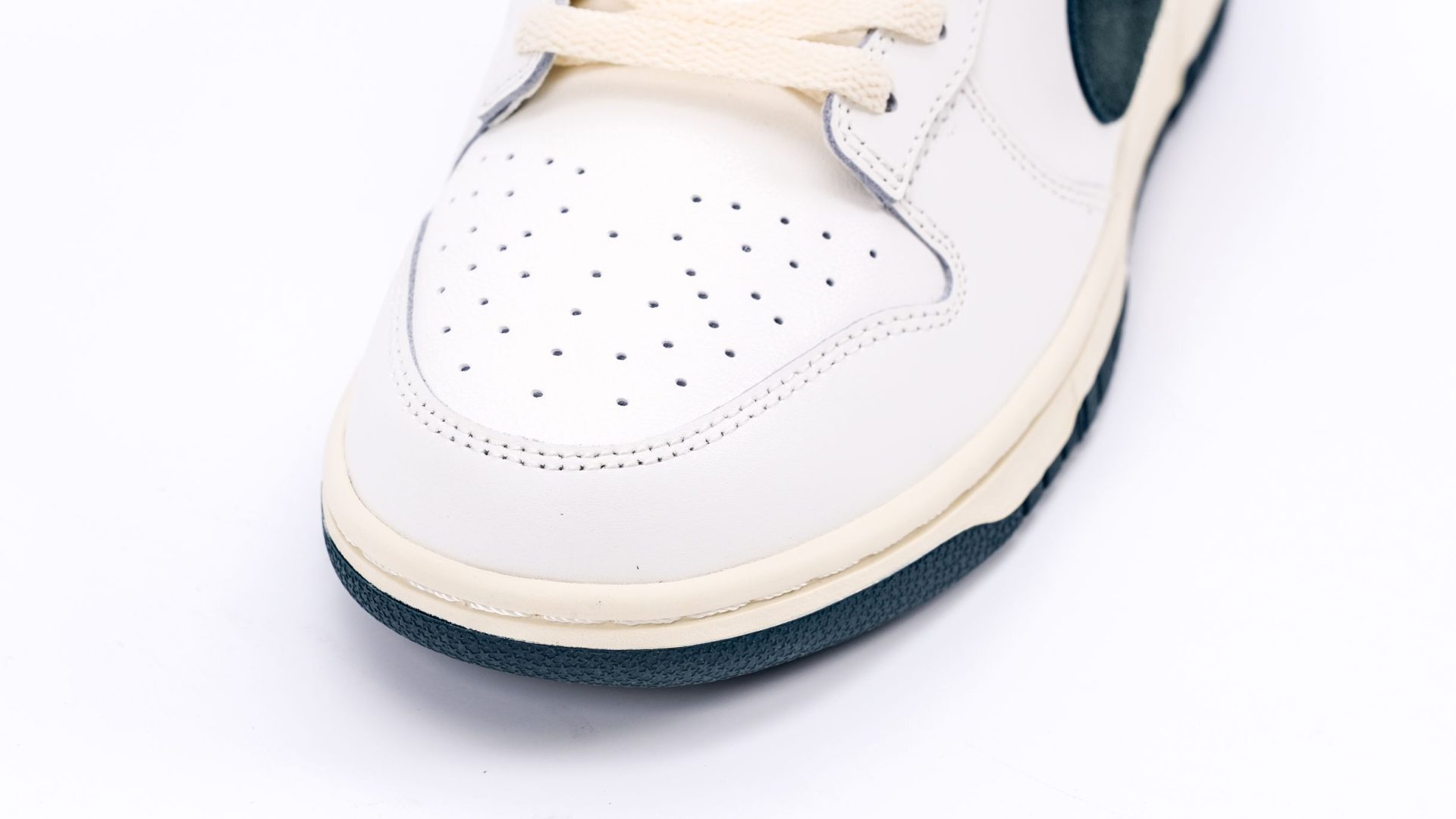 The Dunk Low ‘Athletic Department – Deep Jungle’ also features excellent functional elements, such as a padded collar for comfort and a perforated toe box for enhanced breathability. The outsole is crafted from solid rubber with a pivot circle pattern, providing superior traction and grip, which is crucial for maintaining stability during various activities.