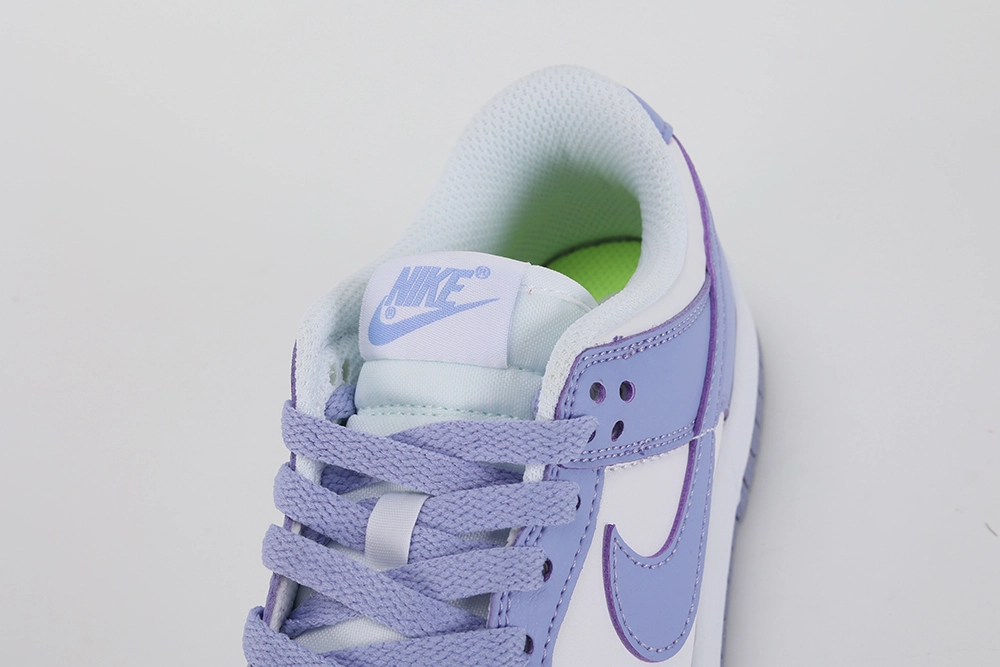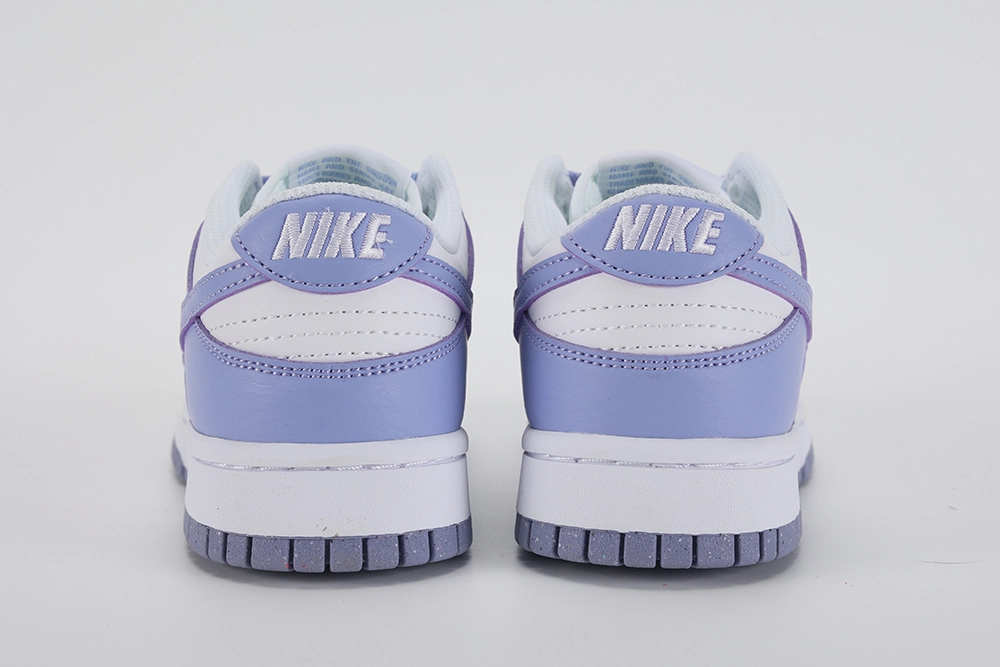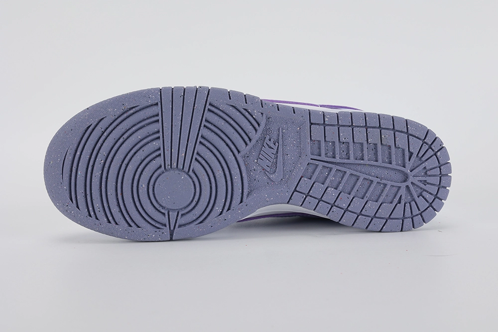 Constructed with at least 20% recycled materials by weight, the Dunk Low Next Nature ‘Lilac’ not only looks good but also feels good to wear, knowing it contributes to a more sustainable future. The upper combines recycled leather and synthetic materials, maintaining the classic Dunk look while introducing an eco-friendly twist. The recycled materials are highlighted by the sneaker’s texture and color depth, proving that sustainable choices can also lead to premium quality and appealing designs.
