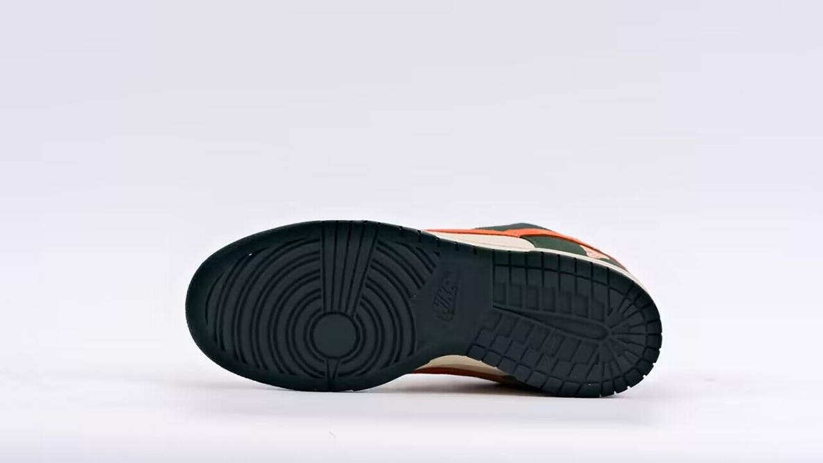 The Dunk Low Pro SB ‘Eire’ is equipped with Nike’s Zoom Air technology in the heel, which provides excellent cushioning and impact protection, essential for skateboarding. The flexible rubber outsole features a pivot circle and a herringbone pattern for superior grip and traction, enhancing the shoe’s overall performance on and off the skateboard.