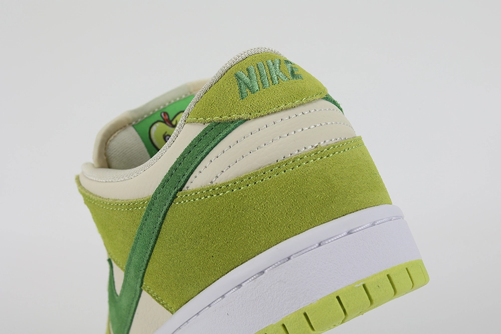 The ‘Fruity Pack – Green Apple’ is not only about its striking looks; it’s equipped with features that enhance comfort and performance. The padded tongue and collar ensure a snug fit, while the Zoom Air unit in the heel offers responsive cushioning, making it ideal for skateboarding or daily wear. The rubber outsole provides excellent traction, ensuring that this sneaker is as functional as it is fashionable.