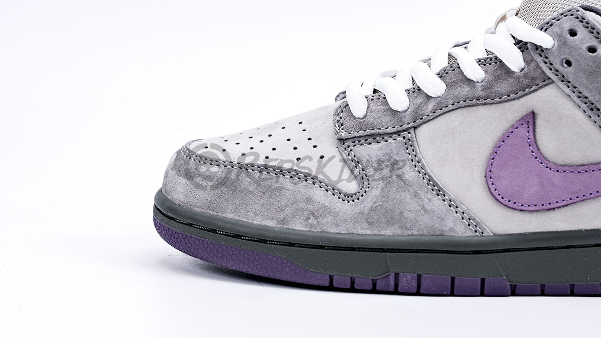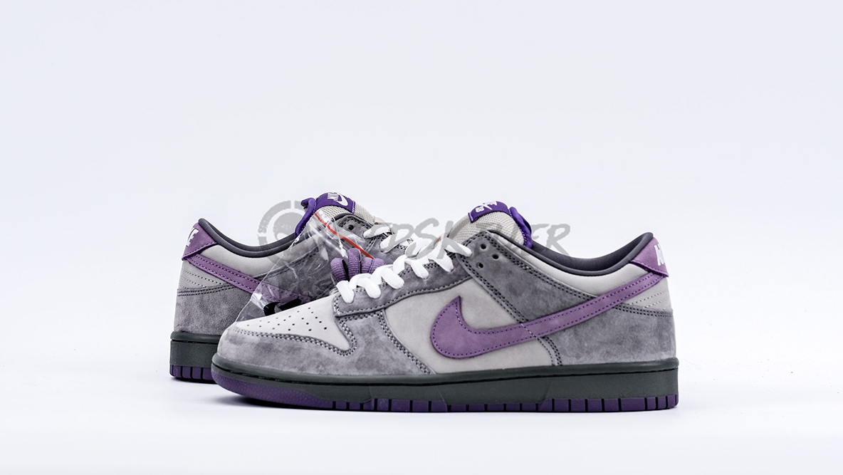 In line with the skateboarding heritage of the SB series, the Dunk Low Pro SB ‘Purple Pigeon’ includes several performance-oriented features. The padded tongue and collar offer increased comfort and support, essential for skateboarding maneuvers. The Zoom Air unit in the heel of the insole ensures responsive cushioning, absorbing impacts and providing protection during skate sessions.