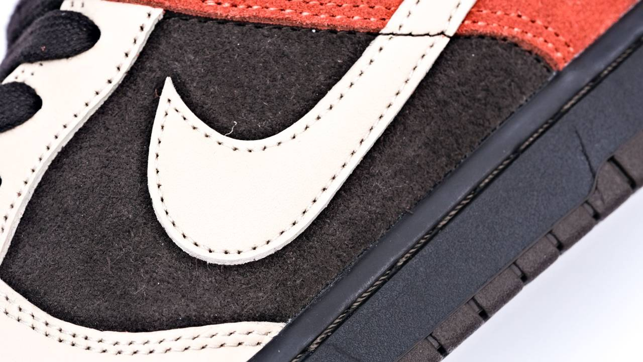 The upper is crafted from a blend of plush suede and durable leather, ensuring both comfort and long-lasting wear. This material choice adds a luxurious texture to the sneaker, enhancing the overall appearance and feel. The Dunk Low ‘Red Panda’ also includes thoughtful design details, such as the panda-inspired graphics on the insole and a playful paw print on the heel, which add an element of fun and uniqueness to the shoe.