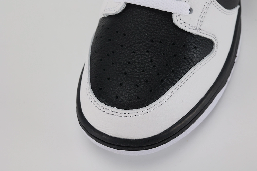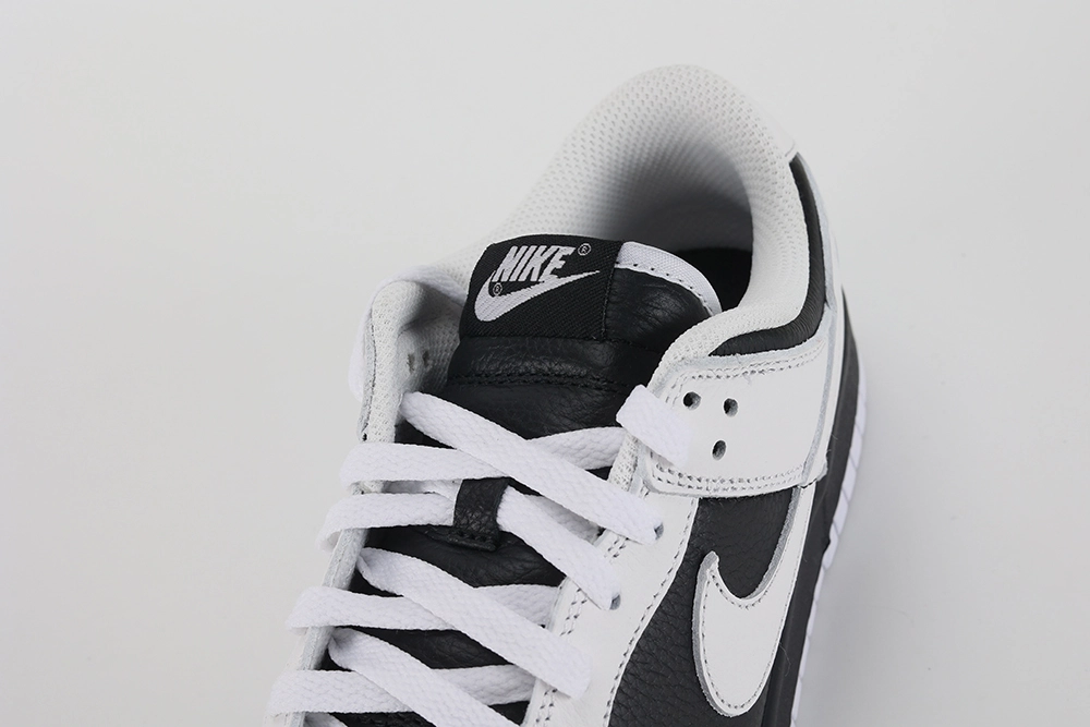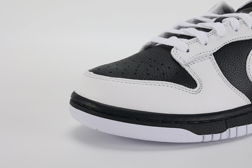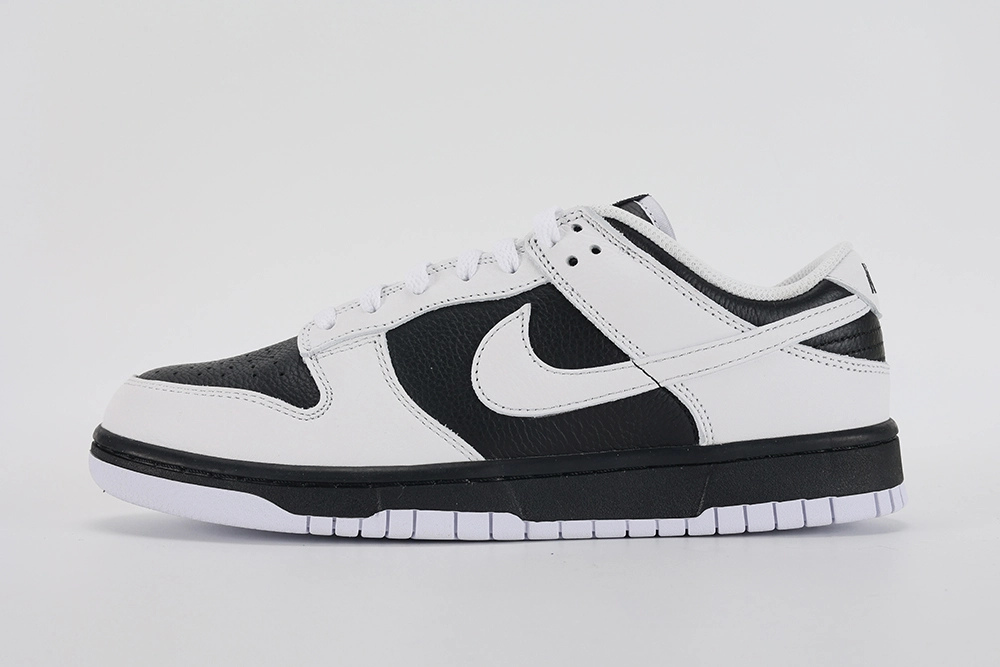Constructed with premium materials, the ‘Reverse Panda’ features a predominantly white leather upper with contrasting black overlays. This inversion not only gives the sneaker a bold visual presence but also highlights the sleek silhouette of the Dunk Low. The crisp, monochrome design makes it an excellent choice for those seeking a sneaker that pairs easily with a variety of outfits, from casual to more dressed-up styles.
