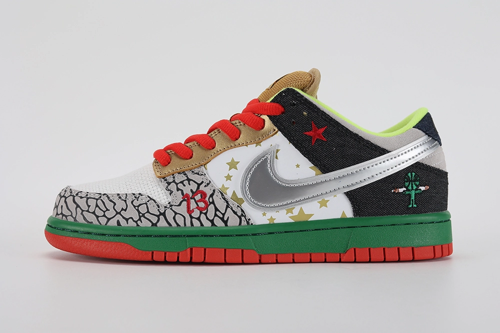 The Dunk Low SB ‘What The Dunk’ is a revolutionary masterpiece in the world of sneakers, epitomizing the essence of creativity and innovation that Nike SB embodies. This sneaker is a kaleidoscopic homage to the most iconic Dunk SB releases, amalgamating various elements from celebrated colorways into a single pair of shoes. The ‘What The Dunk’ is a bold statement piece, showcasing a myriad of colors, textures, and materials that reflect the rich history and diversity of the Dunk SB series.