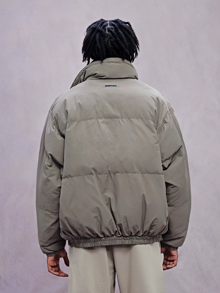 Essentials Double-Stitch Stand Collar Puffer Jacket Grey Essentials Double-Stitch Stand Collar Puffer Jacket Grey