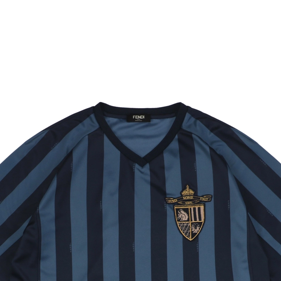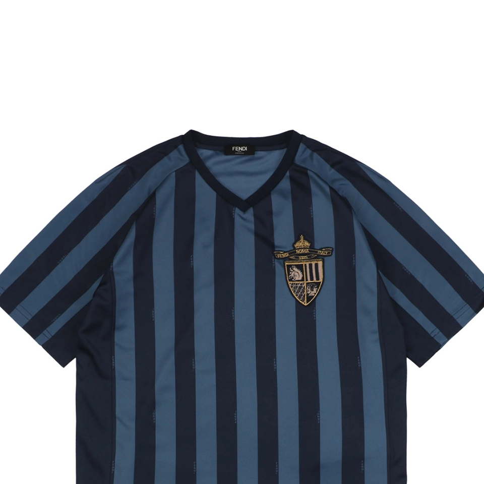 The F Badge Embroidery Striped V-Neck T-Shirt presents a fusion of preppy elegance and modern street flair. Featuring a finely stitched badge motif on the chest, it adds refined character to the sleek vertical stripe layout. The v-neck collar flatters the neckline, while the soft, high-gauge cotton ensures breathable comfort with a lightly structured silhouette. Whether worn alone or layered, it’s a standout piece for both casual and smart occasions.