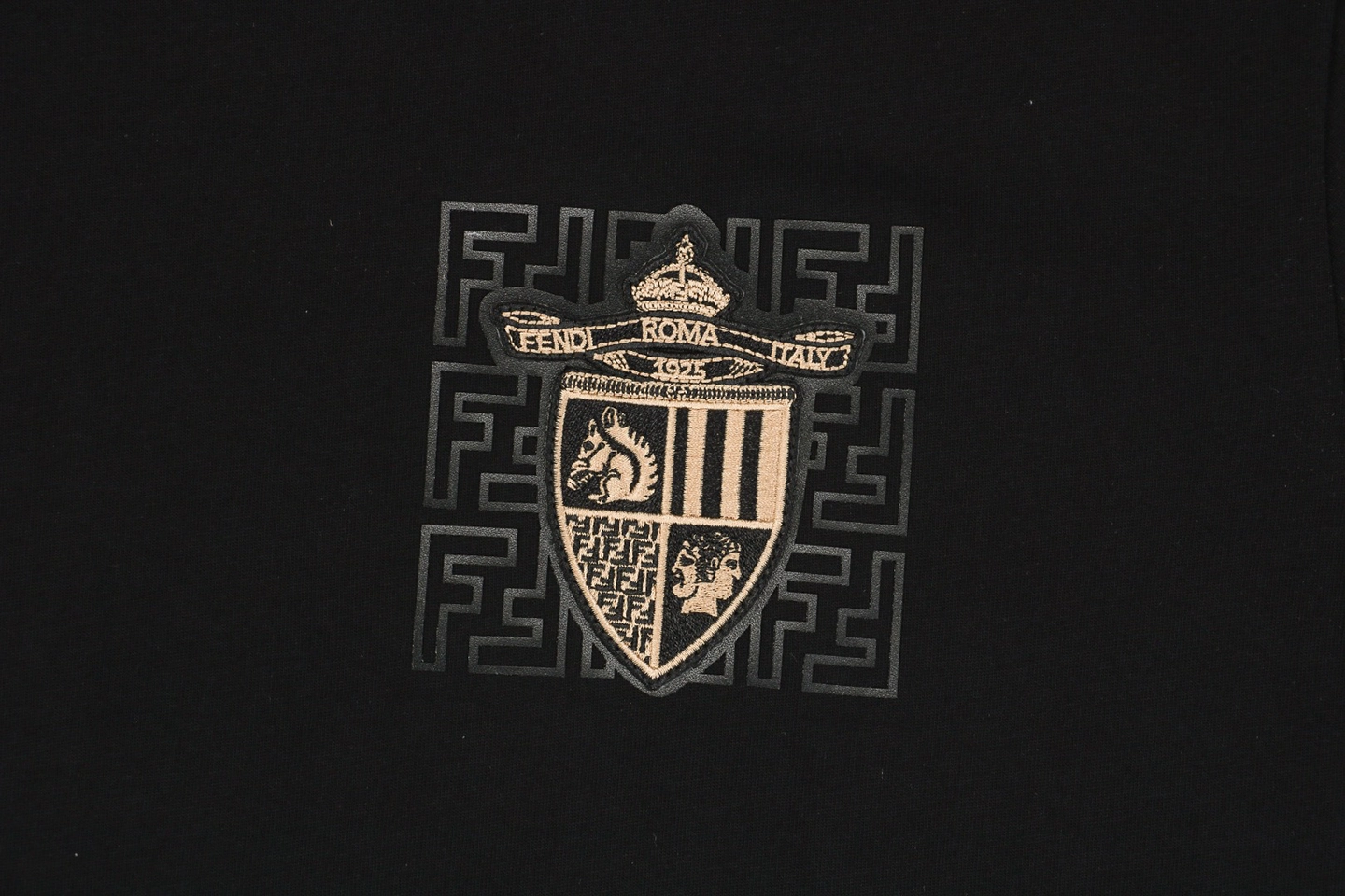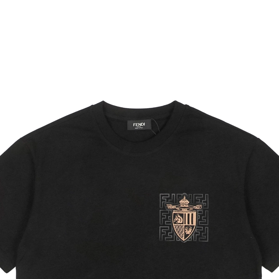 The F Chest FF Crest Embroidered T-Shirt delivers refined branding through subtle execution. Constructed from dense combed cotton, the tee is soft yet structured, ideal for warm-weather wear. A shield-shaped FF crest embroidery sits at the chest, offering depth and visual texture while maintaining a minimalist tone. With a clean straight-cut silhouette, this tee serves as a versatile staple that effortlessly balances casual ease and luxury identity.