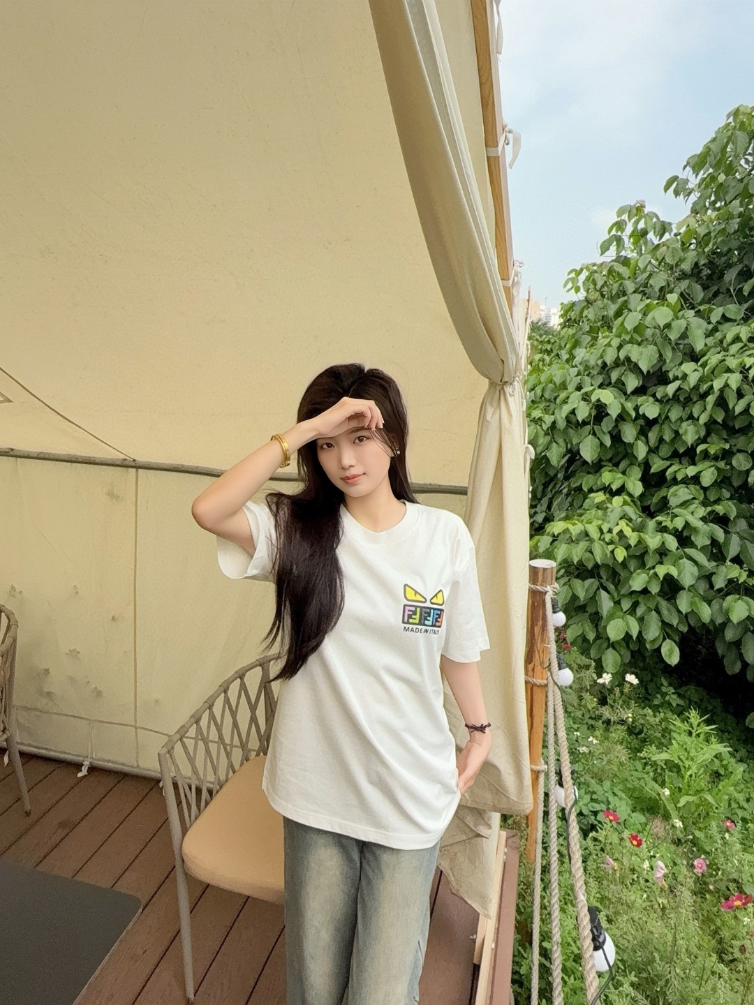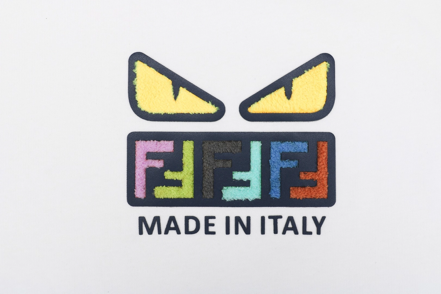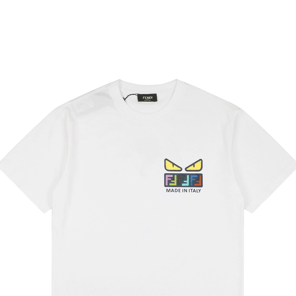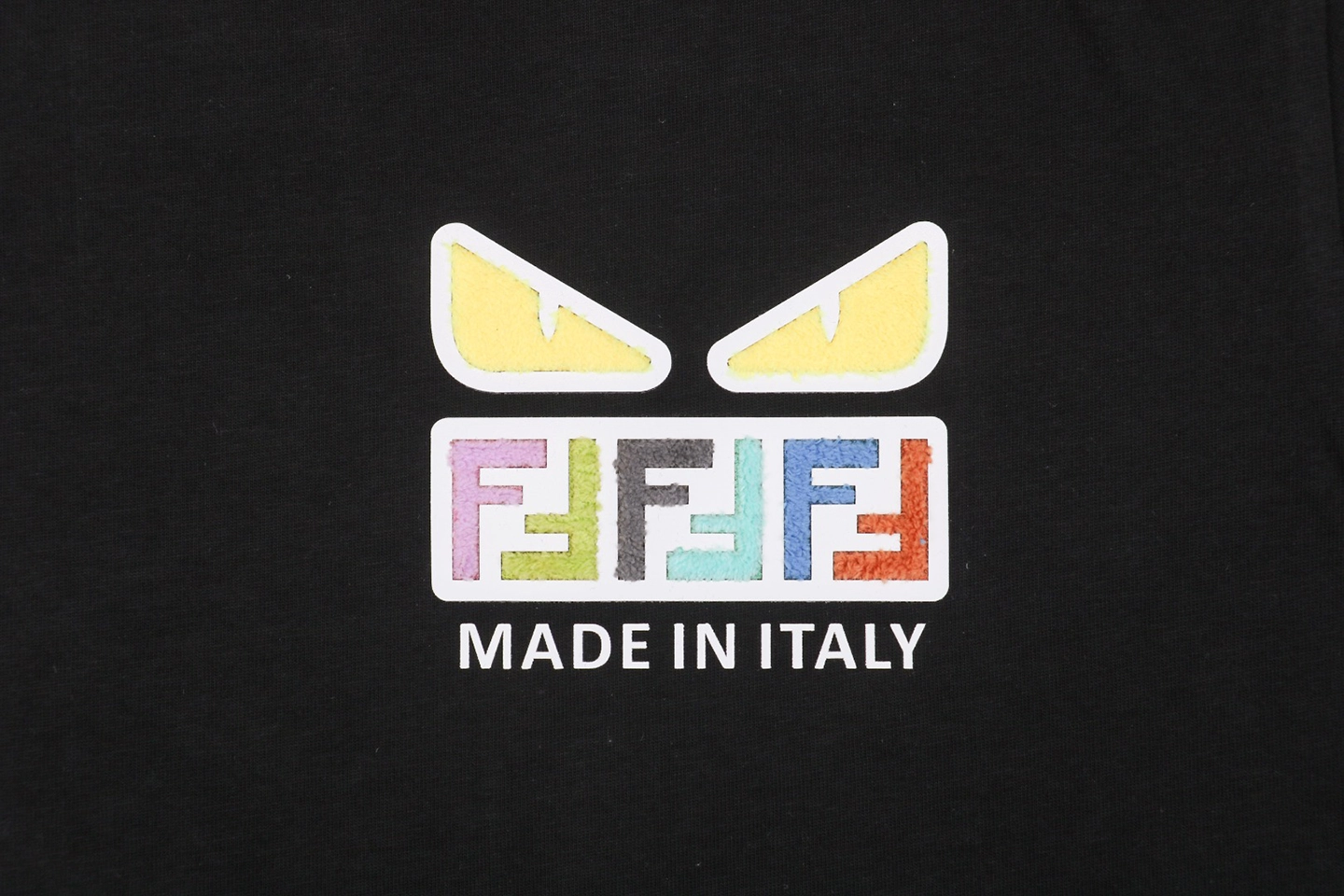 The F Colorful FF Monster Eyes Flocked T-shirt delivers bold energy through vibrant multicolor FF motifs and the brand’s iconic Monster Eyes, rendered in rich flocked texture. Crafted from soft cotton, this statement tee merges playful graphics with premium street-luxury detail. The vivid composition and tactile finish add striking visual depth, perfect for standing out in everyday styling.