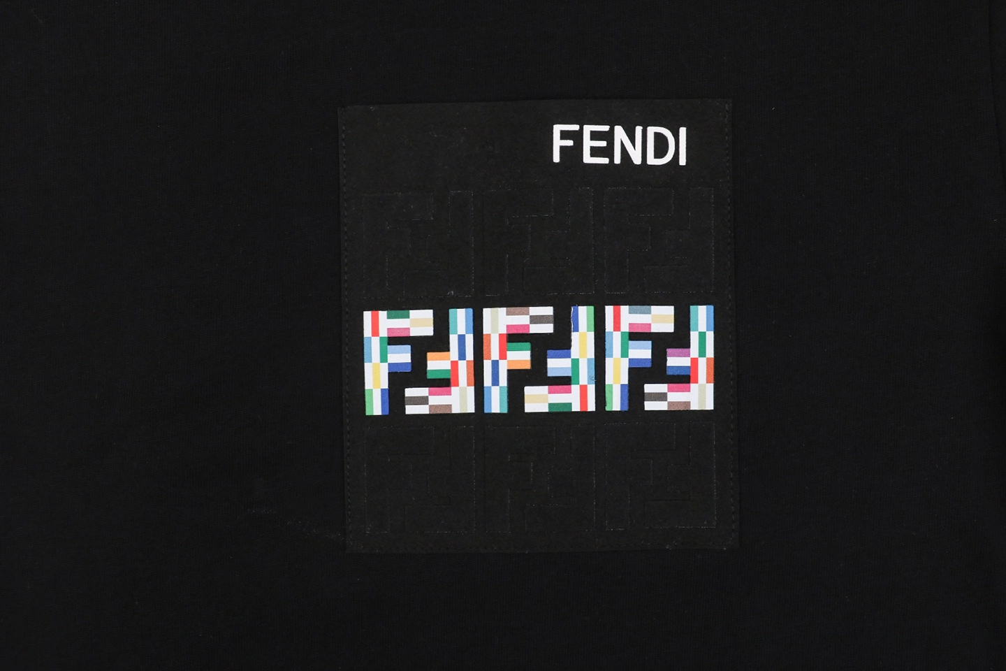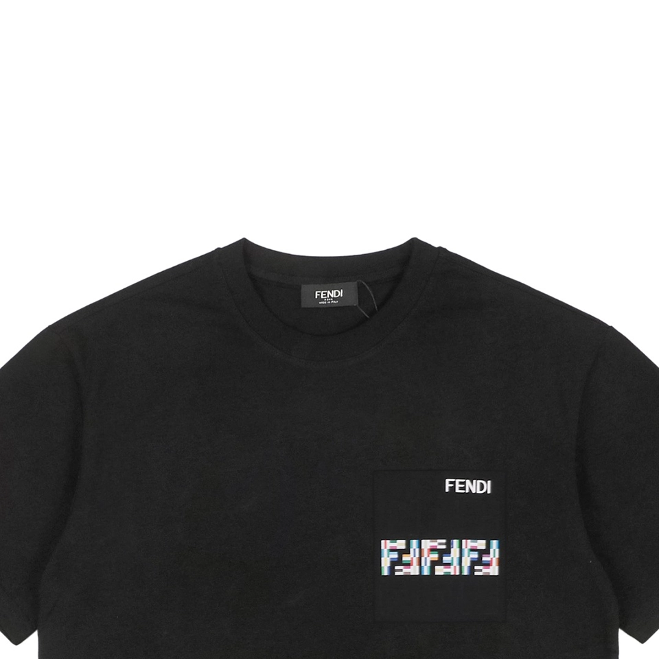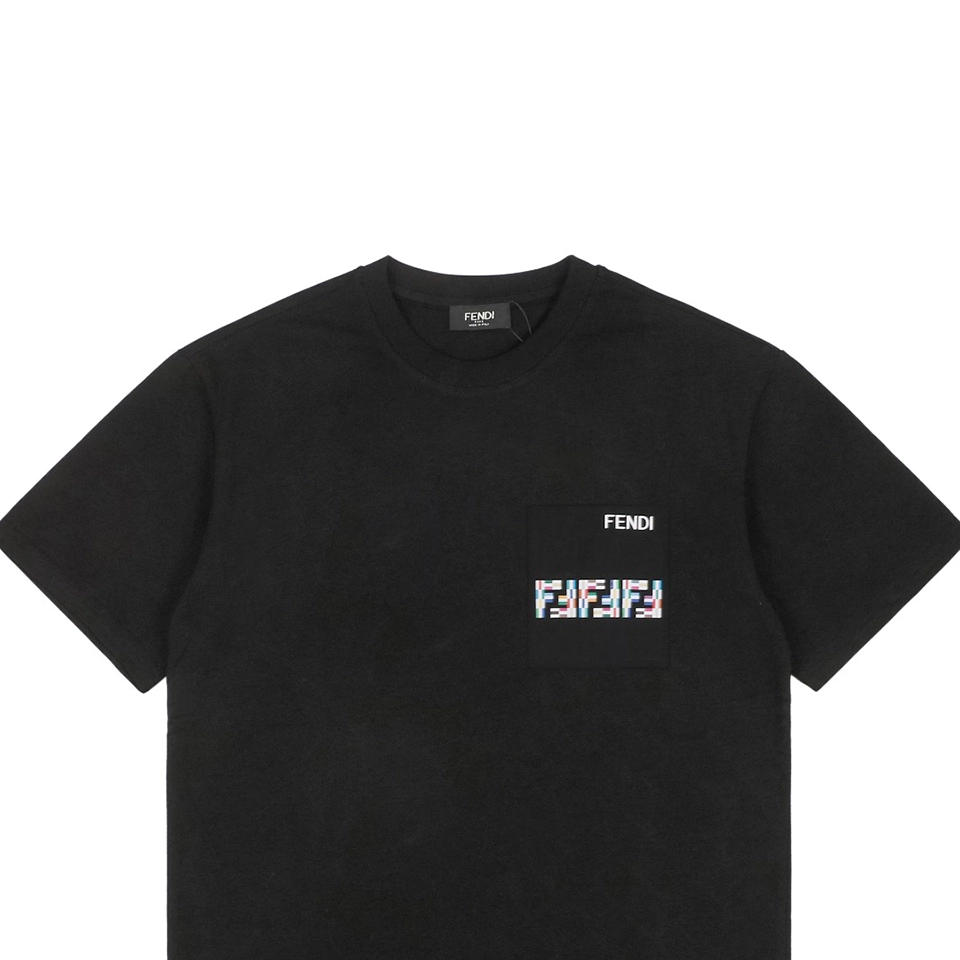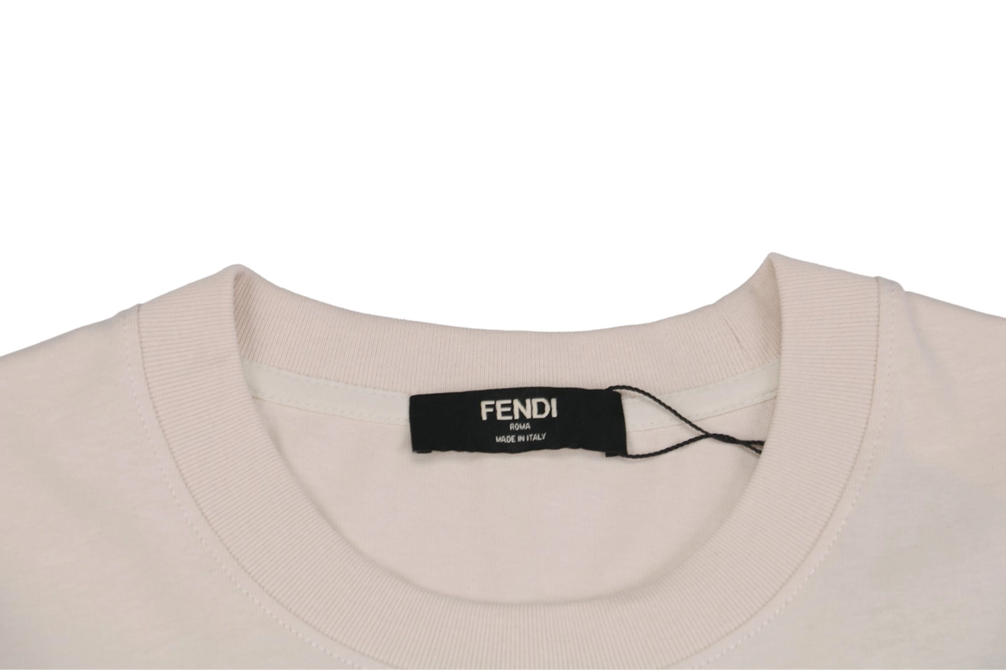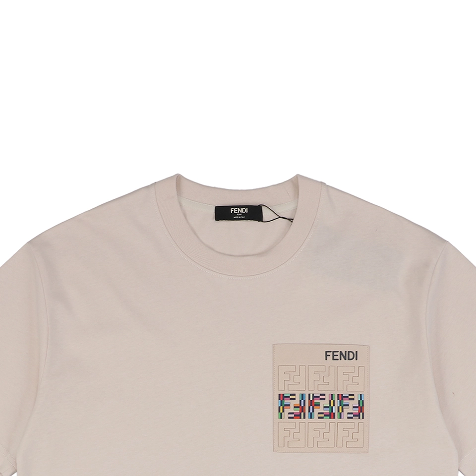 The F Embossed FF Logo Pocket Patch T-Shirt showcases the brand’s heritage motif through exceptional detailing. Made from 250g double-ply combed cotton, the shirt feels structured yet breathable. At the chest sits a laser-cut genuine leather patch, embossed with the iconic FF symbol—finalized after a month-long refinement process to ensure dimensional accuracy and premium feel. The relaxed, unisex silhouette pairs effortlessly with both beige and black base tones, delivering understated elegance with modern edge.