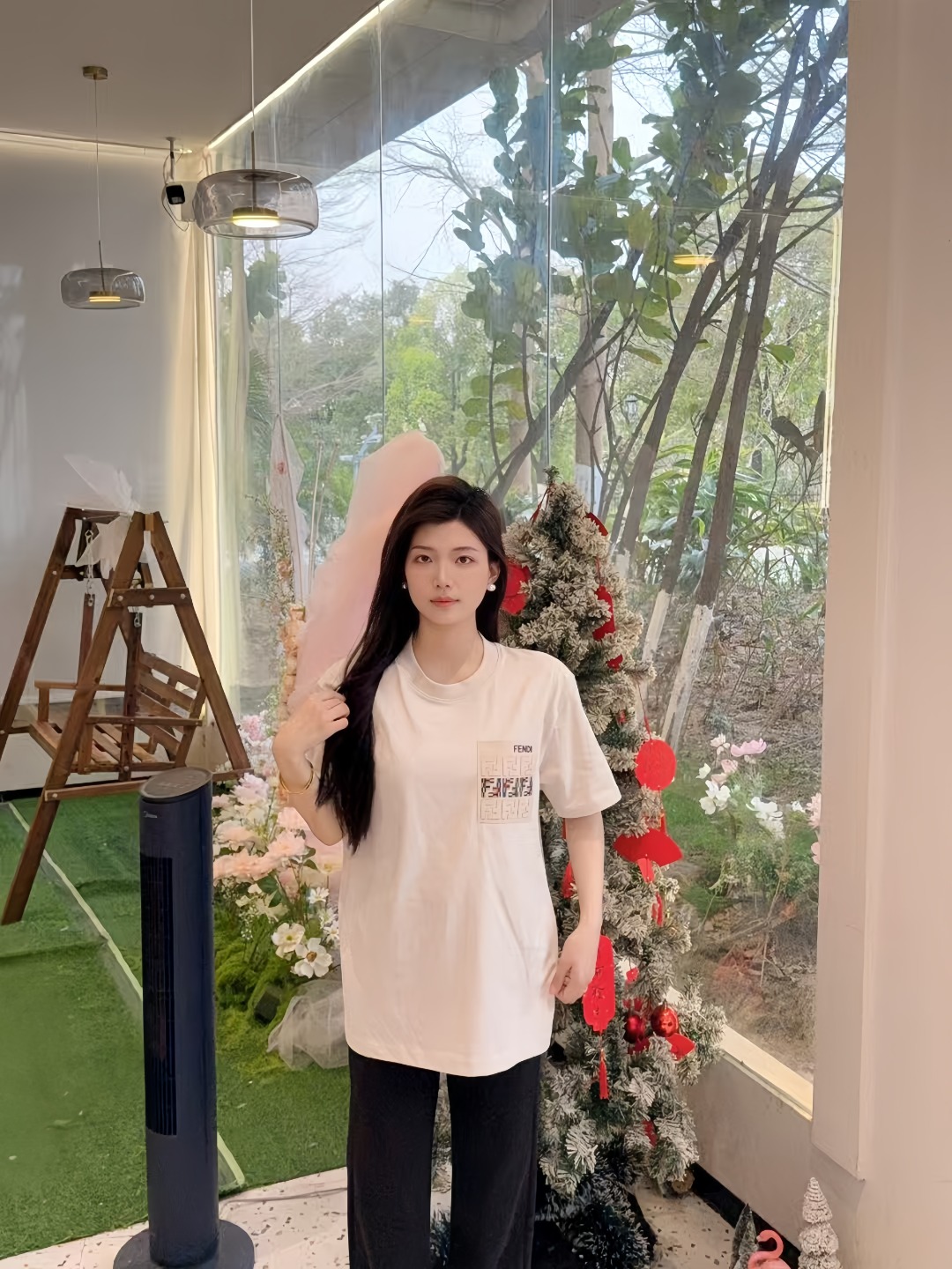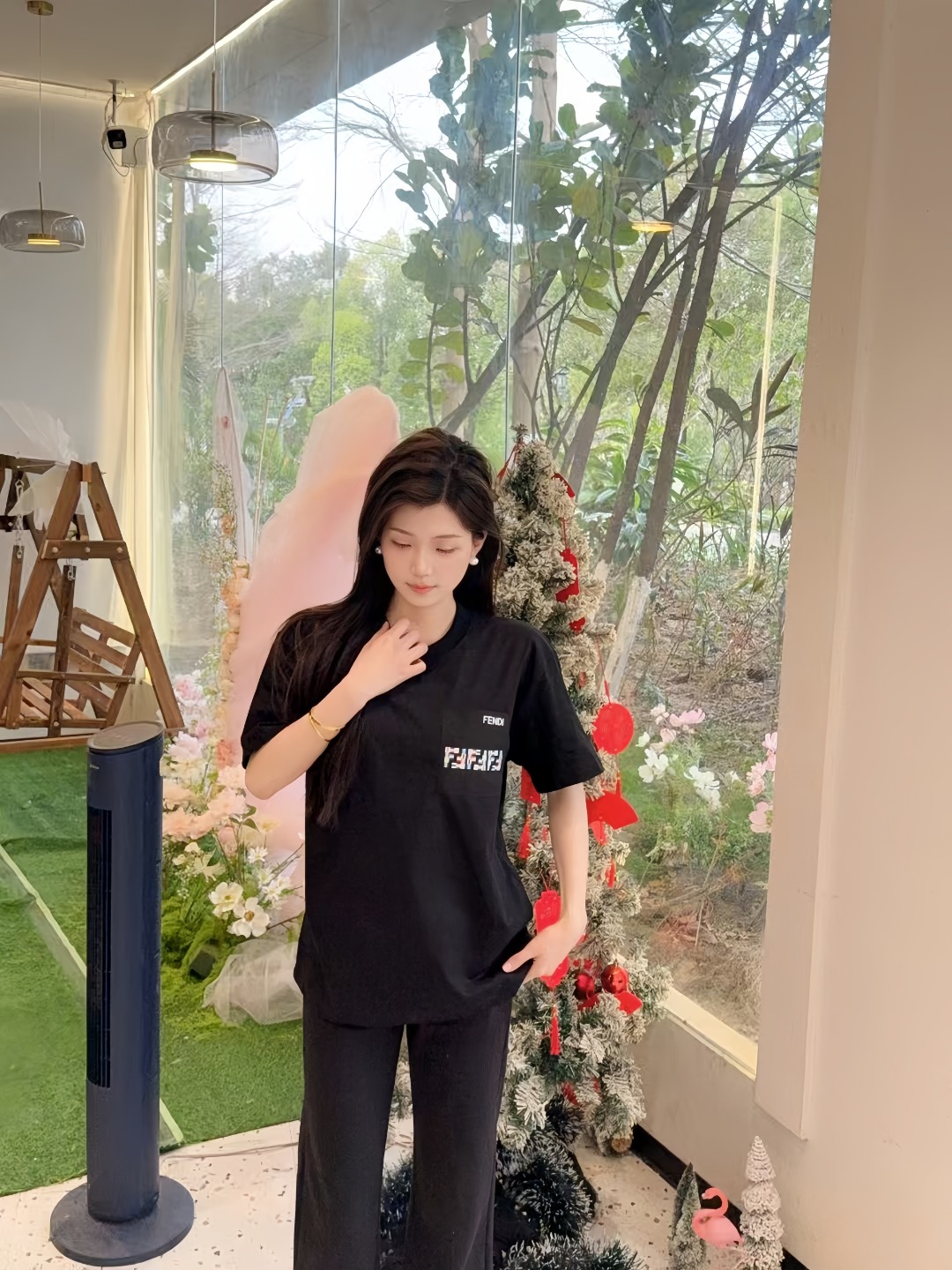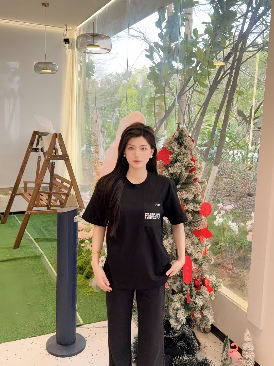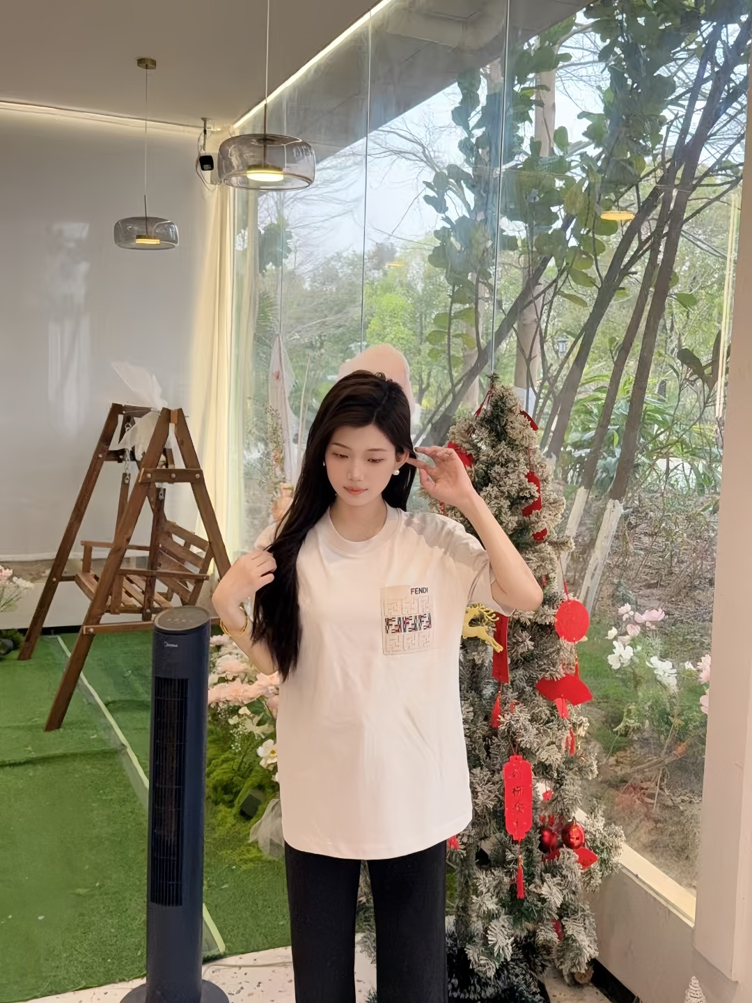 The F Embossed FF Logo Pocket Patch T-Shirt showcases the brand’s heritage motif through exceptional detailing. Made from 250g double-ply combed cotton, the shirt feels structured yet breathable. At the chest sits a laser-cut genuine leather patch, embossed with the iconic FF symbol—finalized after a month-long refinement process to ensure dimensional accuracy and premium feel. The relaxed, unisex silhouette pairs effortlessly with both beige and black base tones, delivering understated elegance with modern edge.