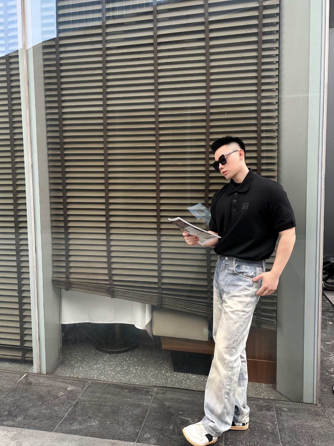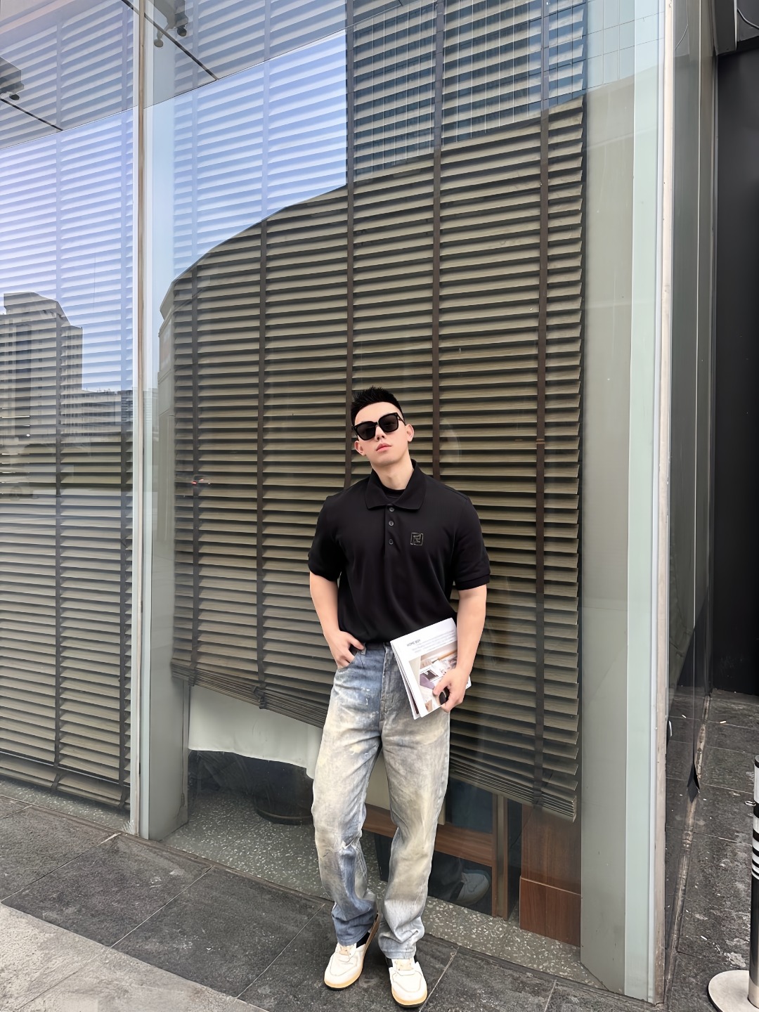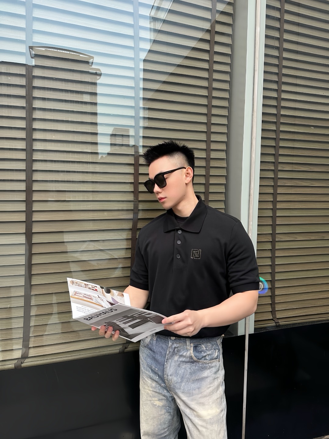 The F Gold FF Embroidered Piqué Polo Shirt showcases subtle luxury through precise detailing. Made from dense piqué cotton, the fabric ensures a crisp silhouette while remaining breathable. The standout detail is a gold-thread FF embroidery at the chest, offering depth and brand character in an understated way. Finished with a classic polo collar and buttoned placket, this shirt merges refinement with daily functionality—ideal for both relaxed elegance and upscale casualwear.