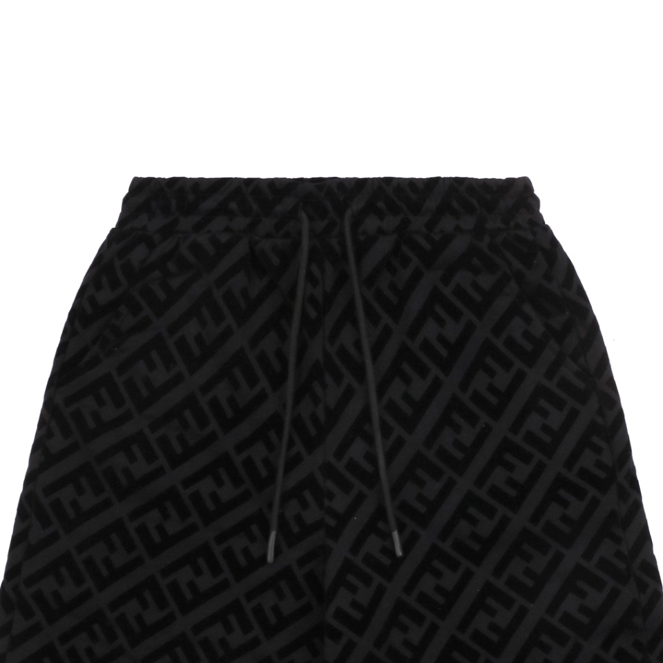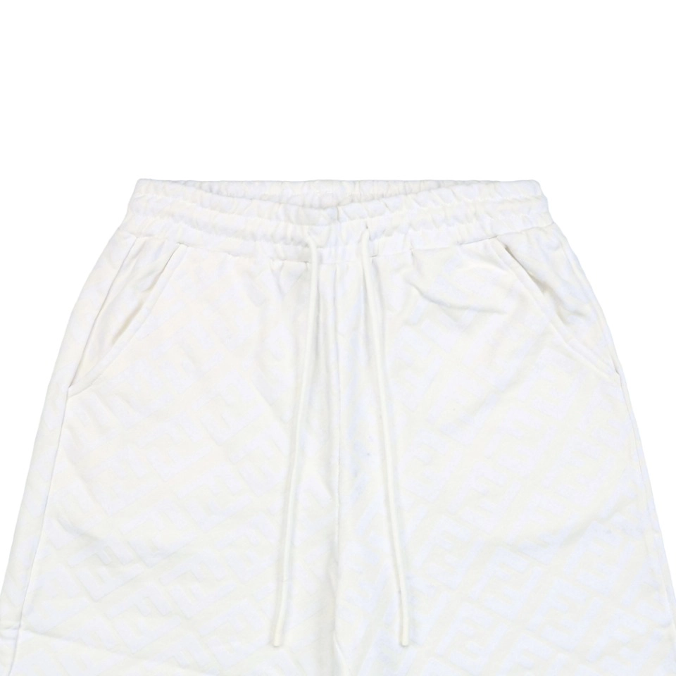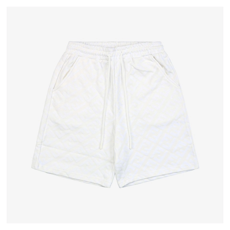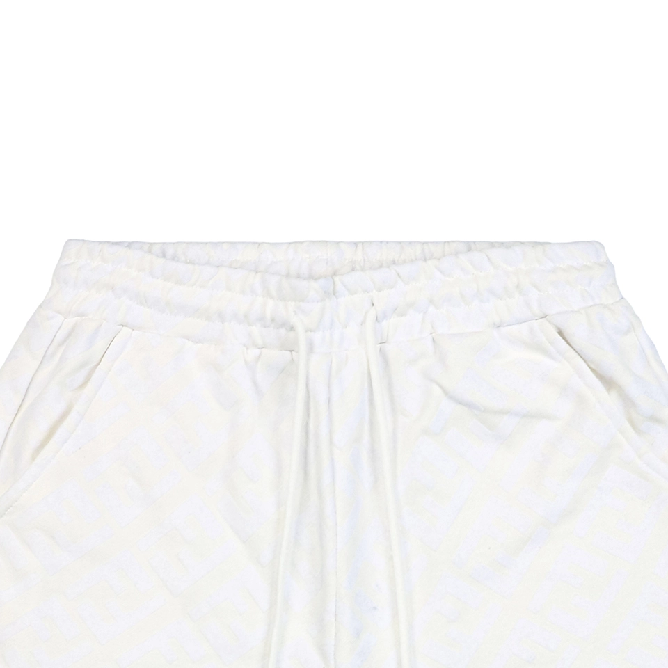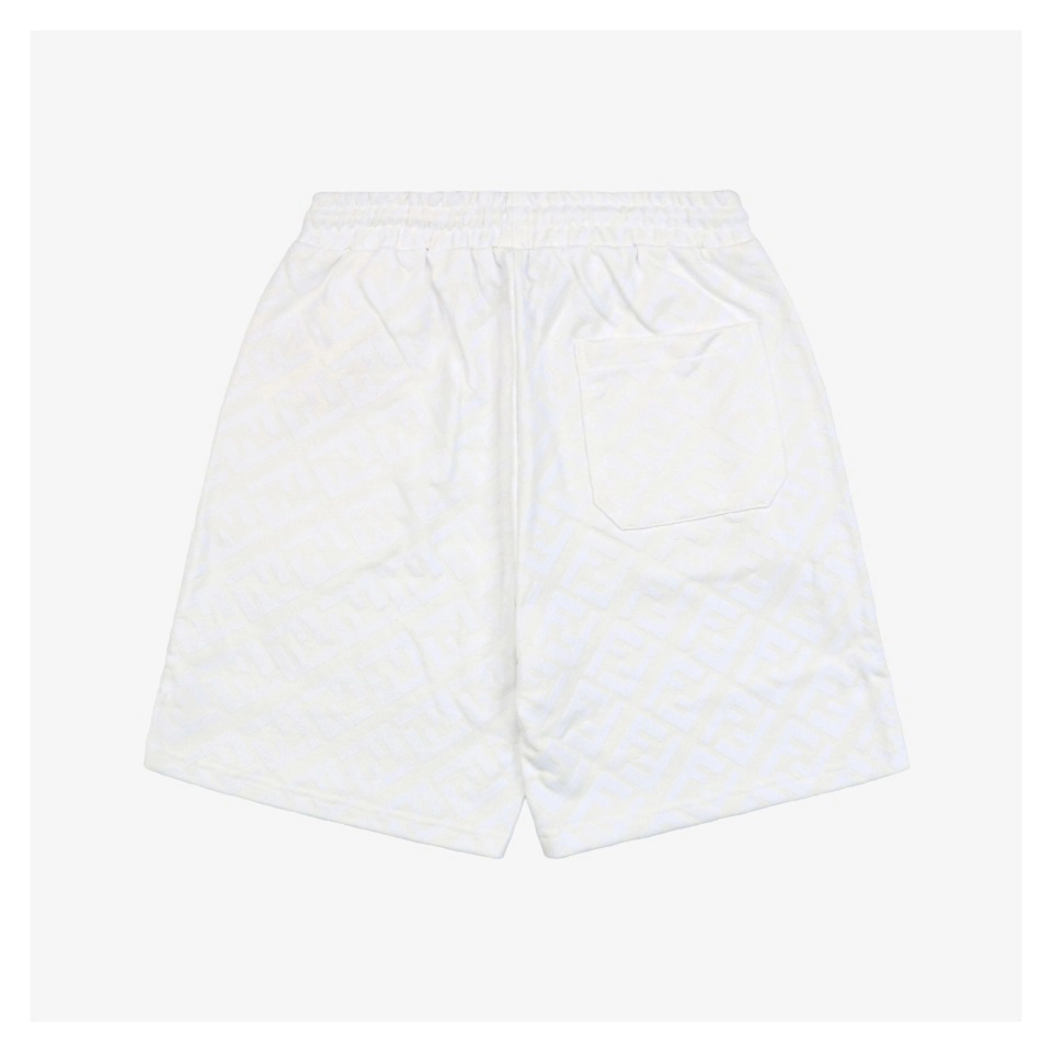 The F Monogram Velvet Logo Pattern Shorts feature an all-over diagonal FF motif in a plush flocked finish, creating a bold yet refined statement. Crafted from soft, breathable cotton blend, these shorts include an elastic waistband with adjustable drawstrings for a customized fit, side pockets for everyday convenience, and a back patch pocket for added utility. The textured velvet effect brings depth and tactile richness, making them a versatile option for casual styling or upscale streetwear looks.