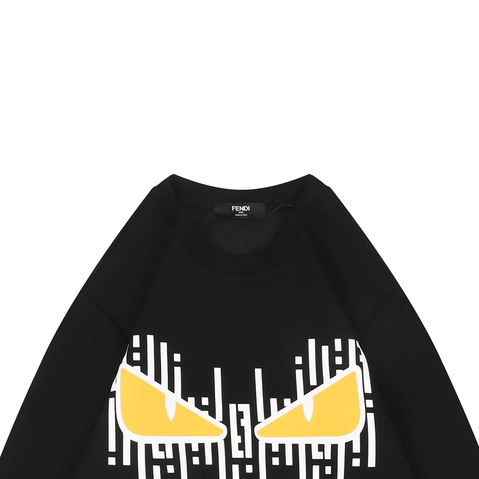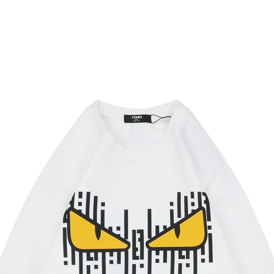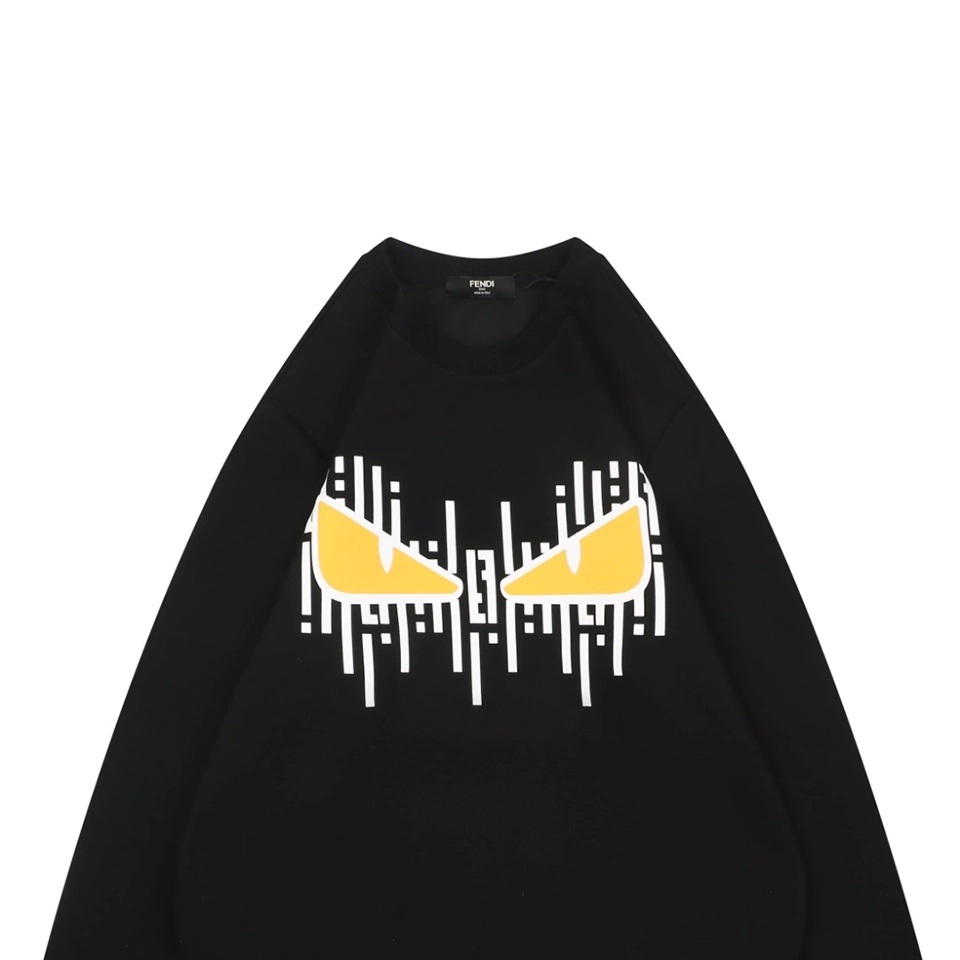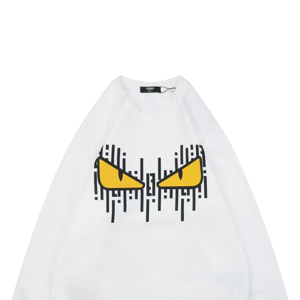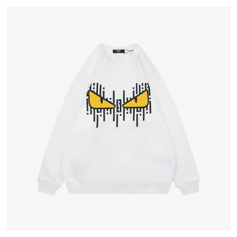 The F Monster Eyes Graphic Sweatshirt features a bold front graphic showcasing F’s iconic Monster Eyes rendered in a modern heat-pressed design with vertical linear detailing that adds a futuristic edge. Crafted from premium soft cotton, it offers a smooth and comfortable feel suitable for everyday wear. The back remains minimal with a clean F ROMA print near the neckline, balancing the strong front design. This relaxed crewneck silhouette delivers an effortless blend of street-inspired attitude and luxury craftsmanship.