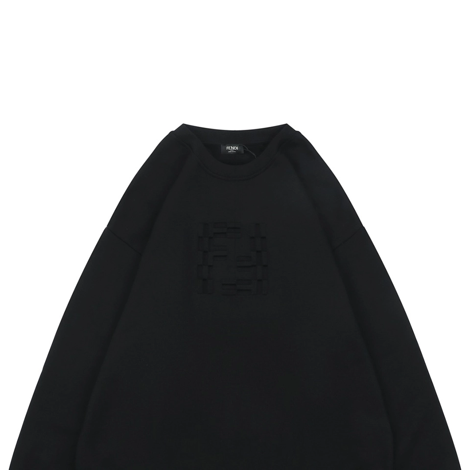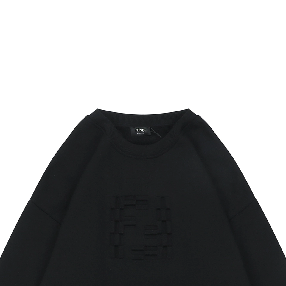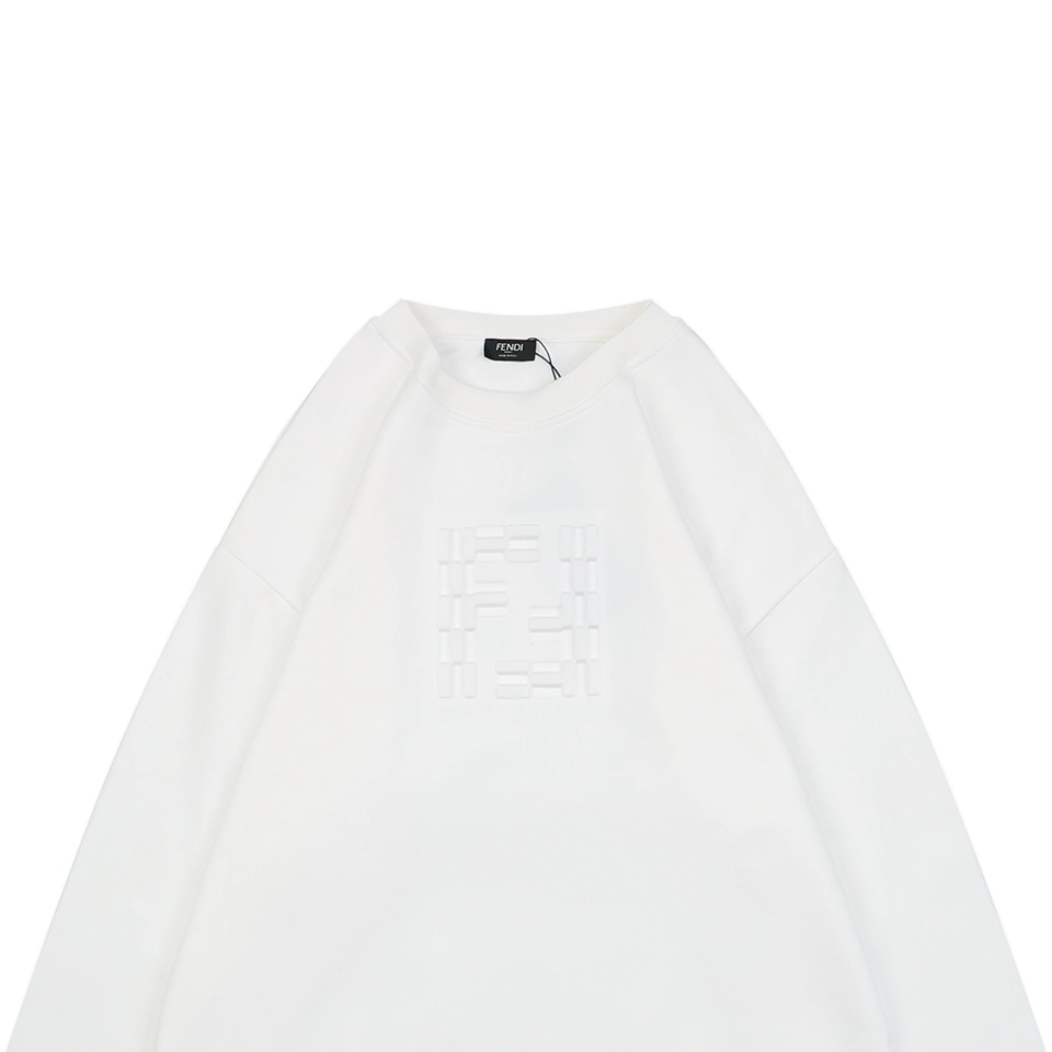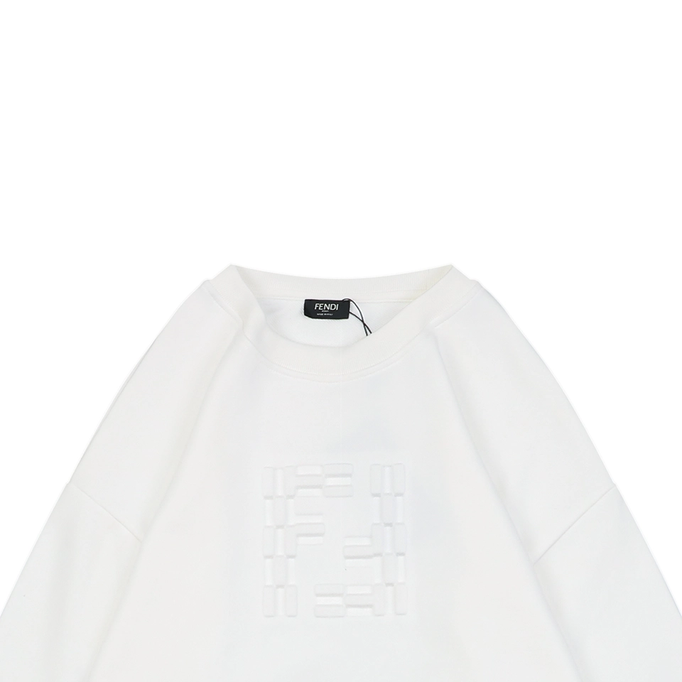 The F Tonal Double-F Embossed Crewneck Sweatshirt delivers a minimalist yet luxurious approach to everyday essentials. Available in black and white, this sweatshirt is crafted from soft, high-density cotton and showcases a tonal embossed double-F logo at the chest, adding texture and understated branding. The classic crewneck silhouette is complemented by ribbed trims and a relaxed cut, ensuring both comfort and style. A subtle woven label near the hem further elevates the refined aesthetic. Ideal for layered styling or standalone wear.