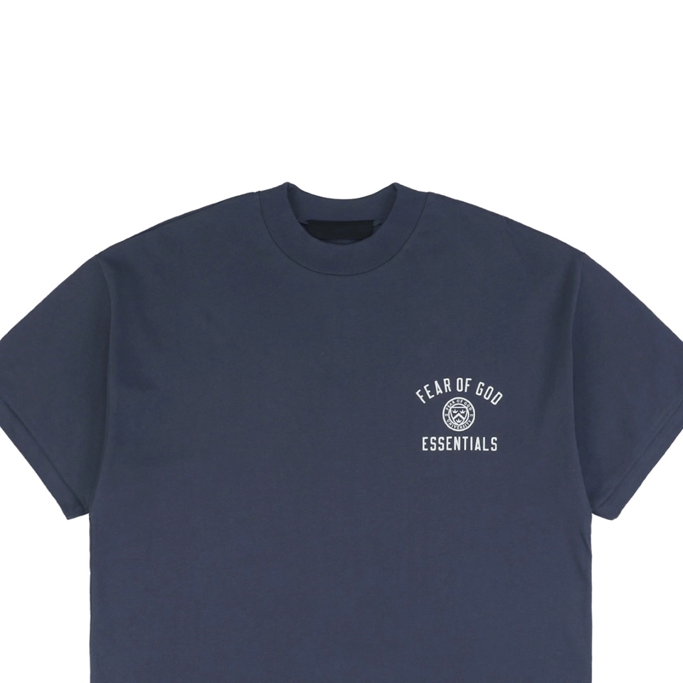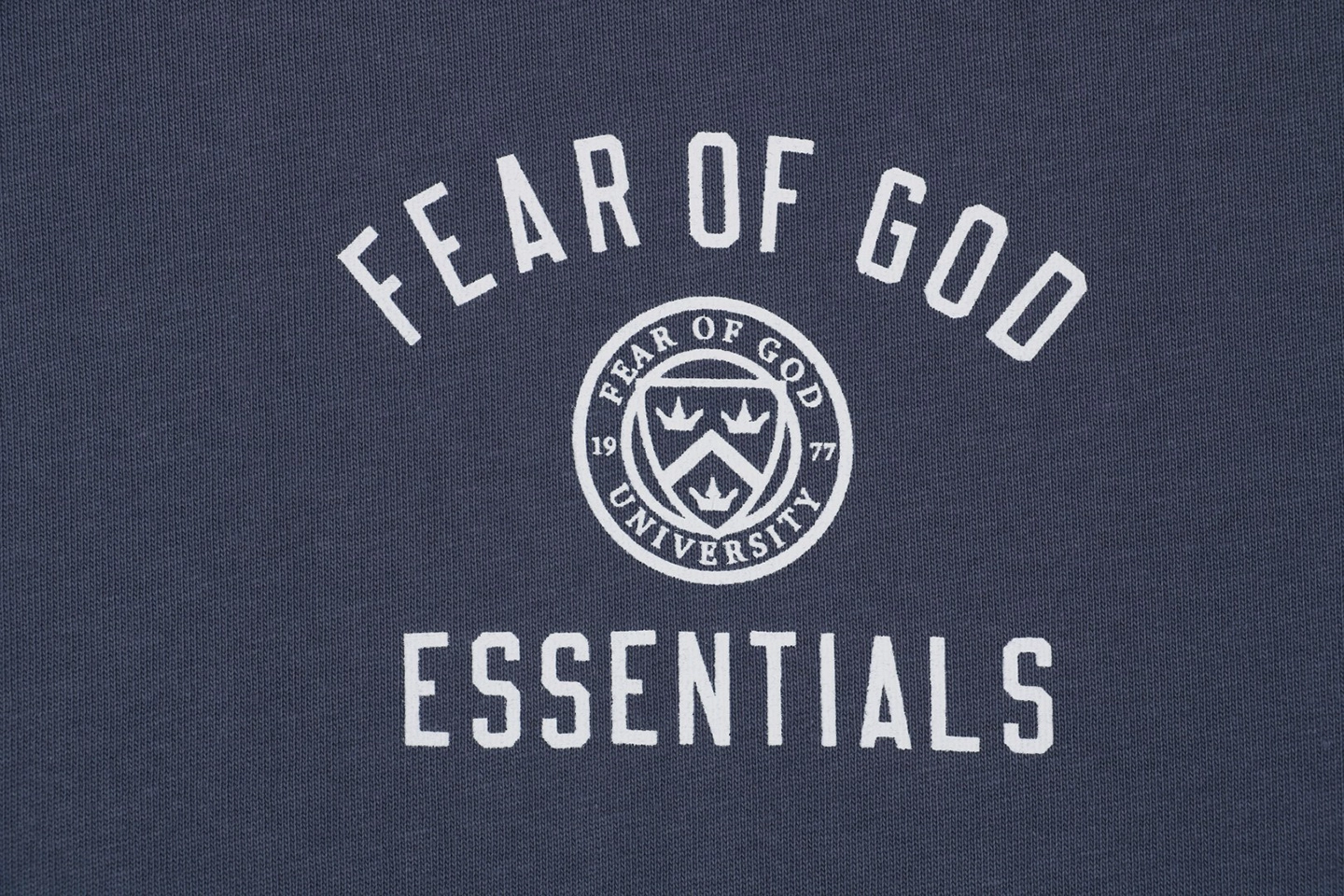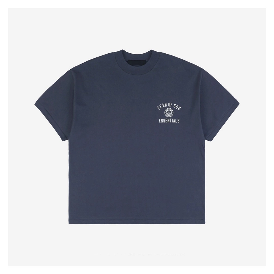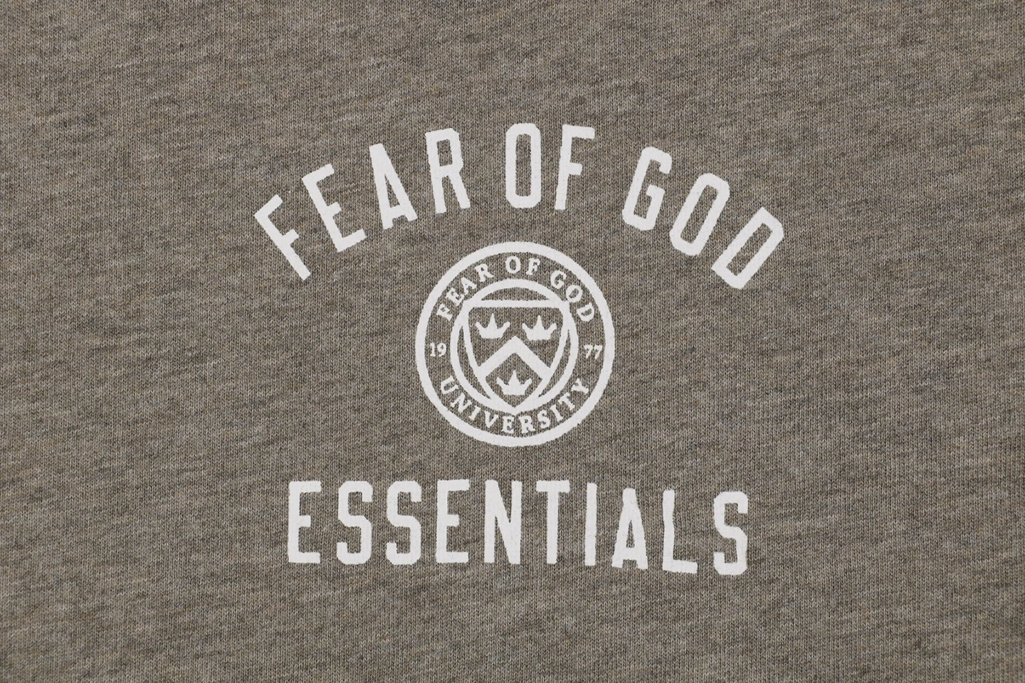 The Fear of God Essentials HOLIDAY Collegiate Logo Print T-Shirt elevates everyday basics with thoughtful construction and understated branding. Made from 280g heavyweight cotton, it offers a soft hand feel and natural drape, complemented by subtle vintage texture that reinforces its streetwise roots. The ribbed collar, cuffs, and hem enhance durability and shape retention, while the matte rubberized “ESSENTIALS HOLIDAY” print delivers quiet impact across the chest. Designed in a relaxed, drop-shoulder silhouette, this tee embodies Fear of God’s signature balance between minimalism and high-street attitude.