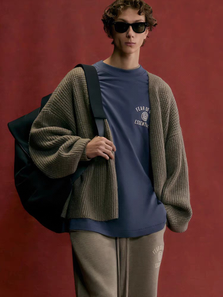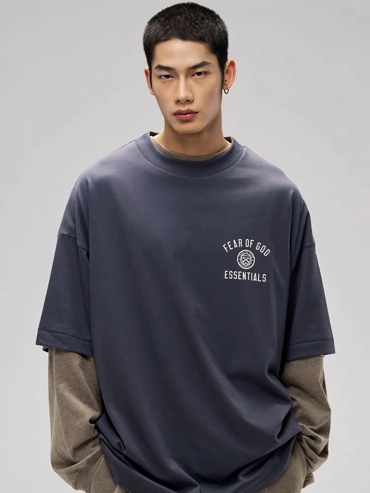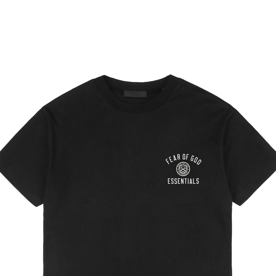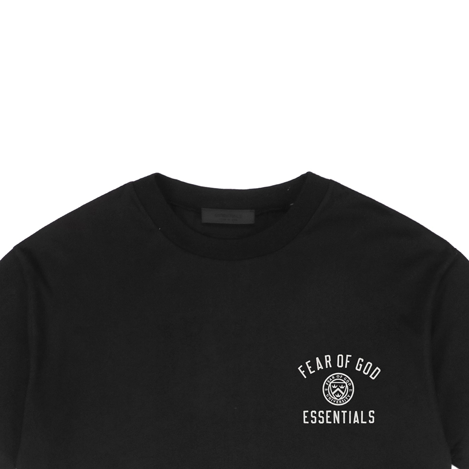 The Fear of God Essentials HOLIDAY Collegiate Logo Print T-Shirt elevates everyday basics with thoughtful construction and understated branding. Made from 280g heavyweight cotton, it offers a soft hand feel and natural drape, complemented by subtle vintage texture that reinforces its streetwise roots. The ribbed collar, cuffs, and hem enhance durability and shape retention, while the matte rubberized “ESSENTIALS HOLIDAY” print delivers quiet impact across the chest. Designed in a relaxed, drop-shoulder silhouette, this tee embodies Fear of God’s signature balance between minimalism and high-street attitude.