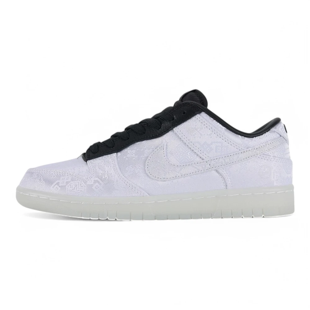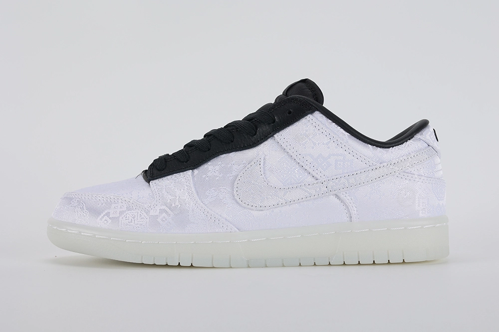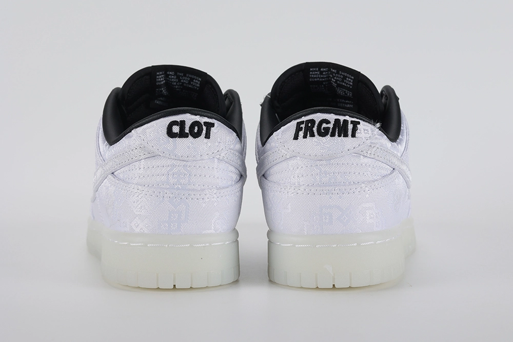 The Fragment Design x CLOT x Dunk Low ’20th Anniversary’ sneaker is a monumental collaboration celebrating two decades of CLOT, an influential player in the streetwear and sneaker culture. This collaboration brings together Fragment Design, led by the legendary Hiroshi Fujiwara, known for its minimalist aesthetic and impactful collaborations, and CLOT, founded by Edison Chen and Kevin Poon, recognized for its East-meets-West fusion designs. The result is a sneaker that seamlessly blends the signature elements of both brands into the iconic Dunk Low silhouette, creating a piece that’s rich in detail and significance.