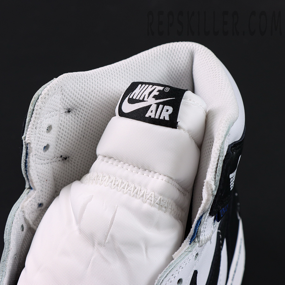 A clean white midsole paired with a black rubber outsole completes the design, preserving the original Air Jordan 1 proportions and ensuring everyday wearability. The high-top cut maintains ankle support and a retro profile, making this pair suitable for both collectors and those exploring premium options in the best reps sneaker market.
