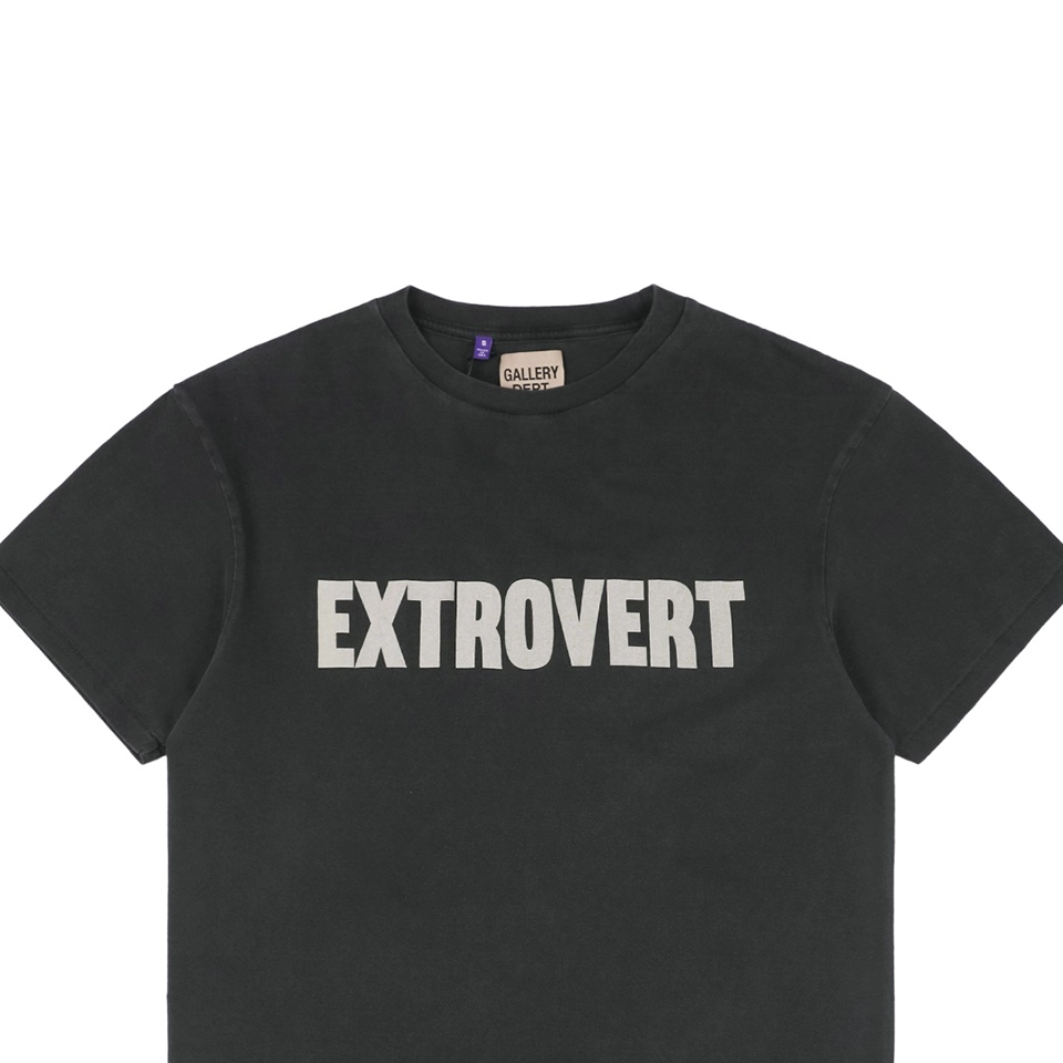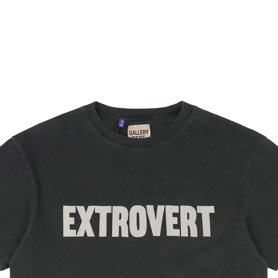 The Gallery Dept Double-sided Graphic T-shirt redefines versatility with a reversible design featuring distinct graphics on each side. One face boldly displays “EXTROVERT” lettering while the reverse showcases “INTROVERT,” allowing wearers to express different moods. Complemented by additional subtle branding and motifs, this washed black tee embodies the brand’s deconstructed aesthetic. Crafted from premium cotton, it provides both comfort and an effortlessly worn-in look, emblematic of Gallery Dept’s unique streetwear appeal.