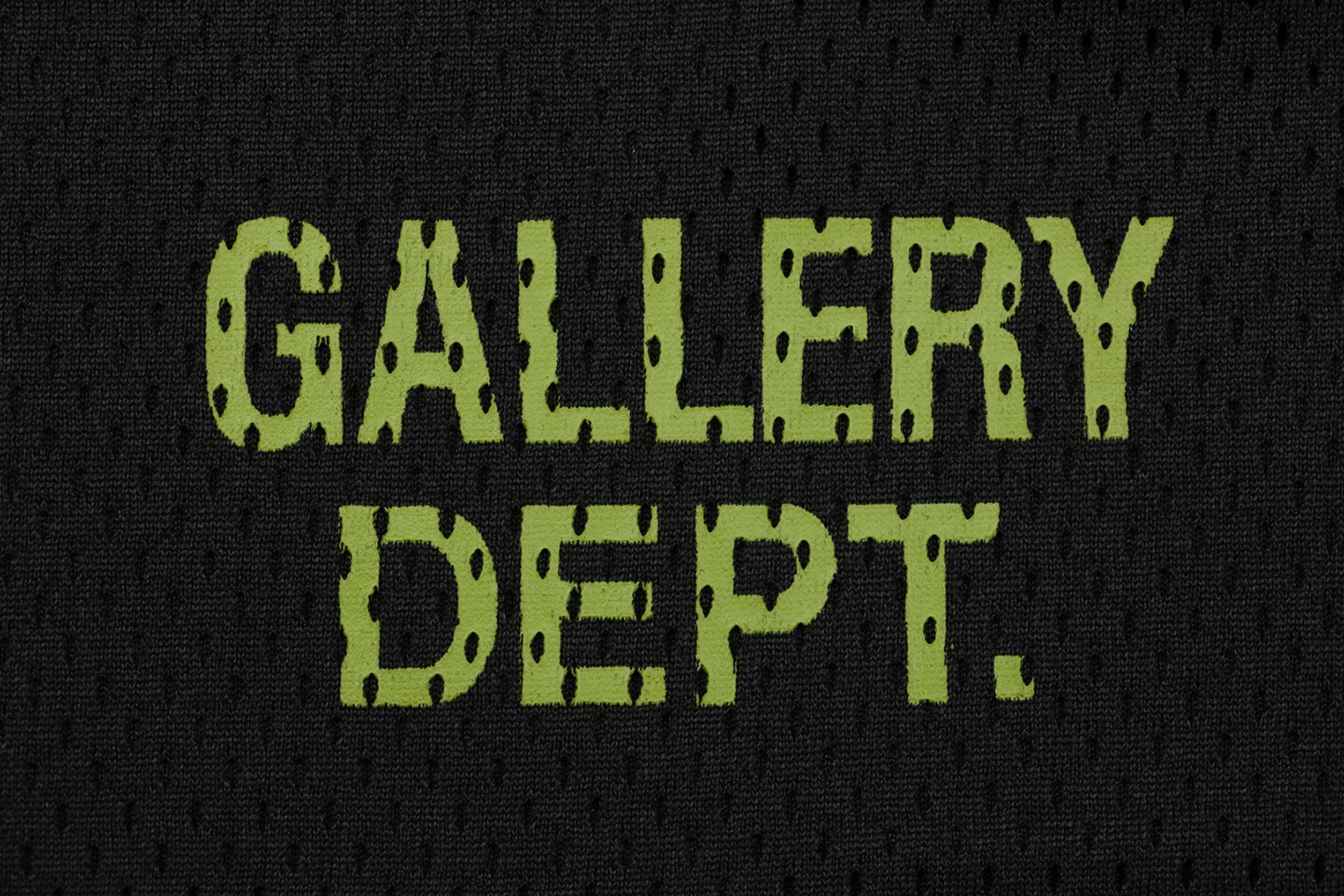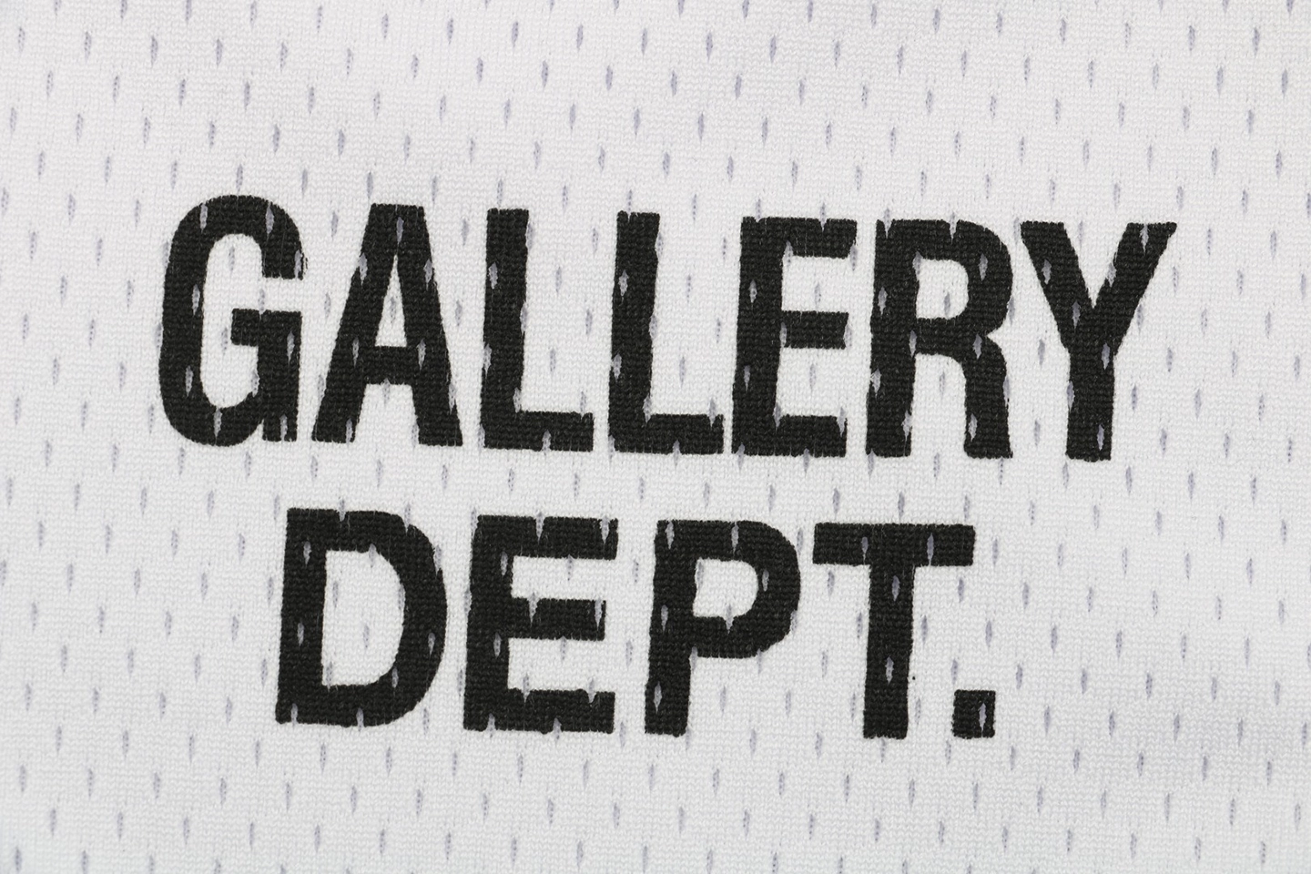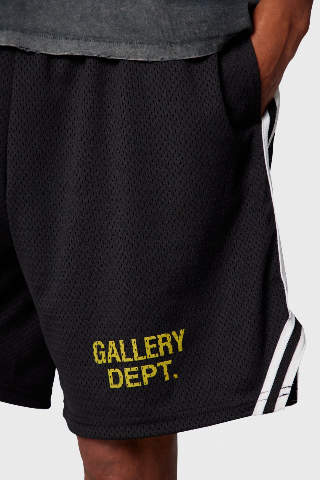 The Gallery Dept English Letter Mesh Basketball Shorts fuse athletic utility with bold streetwear aesthetics. Crafted from lightweight breathable mesh, they offer all-day comfort in hot weather. The prominent English text print adds visual energy, while the elastic waistband with drawstring provides a secure custom fit. With a relaxed silhouette and structured lines, these shorts are ideal for off-duty styling or casual hoop sessions.