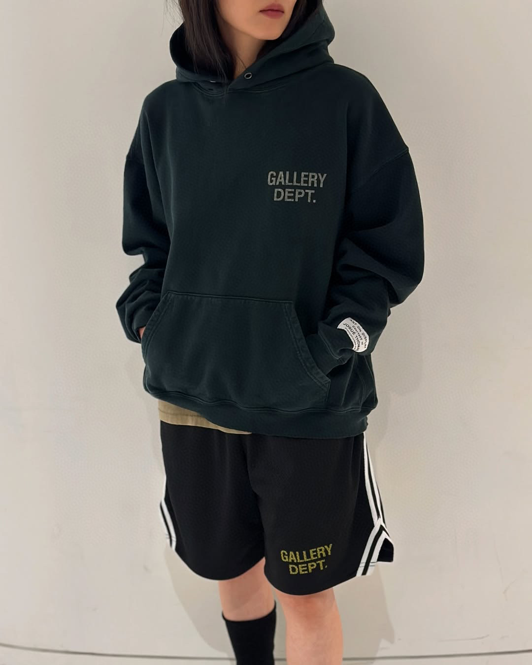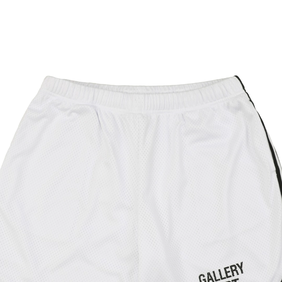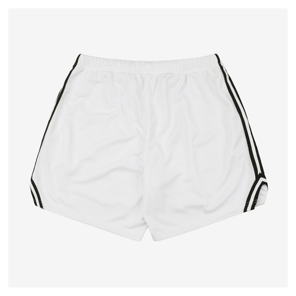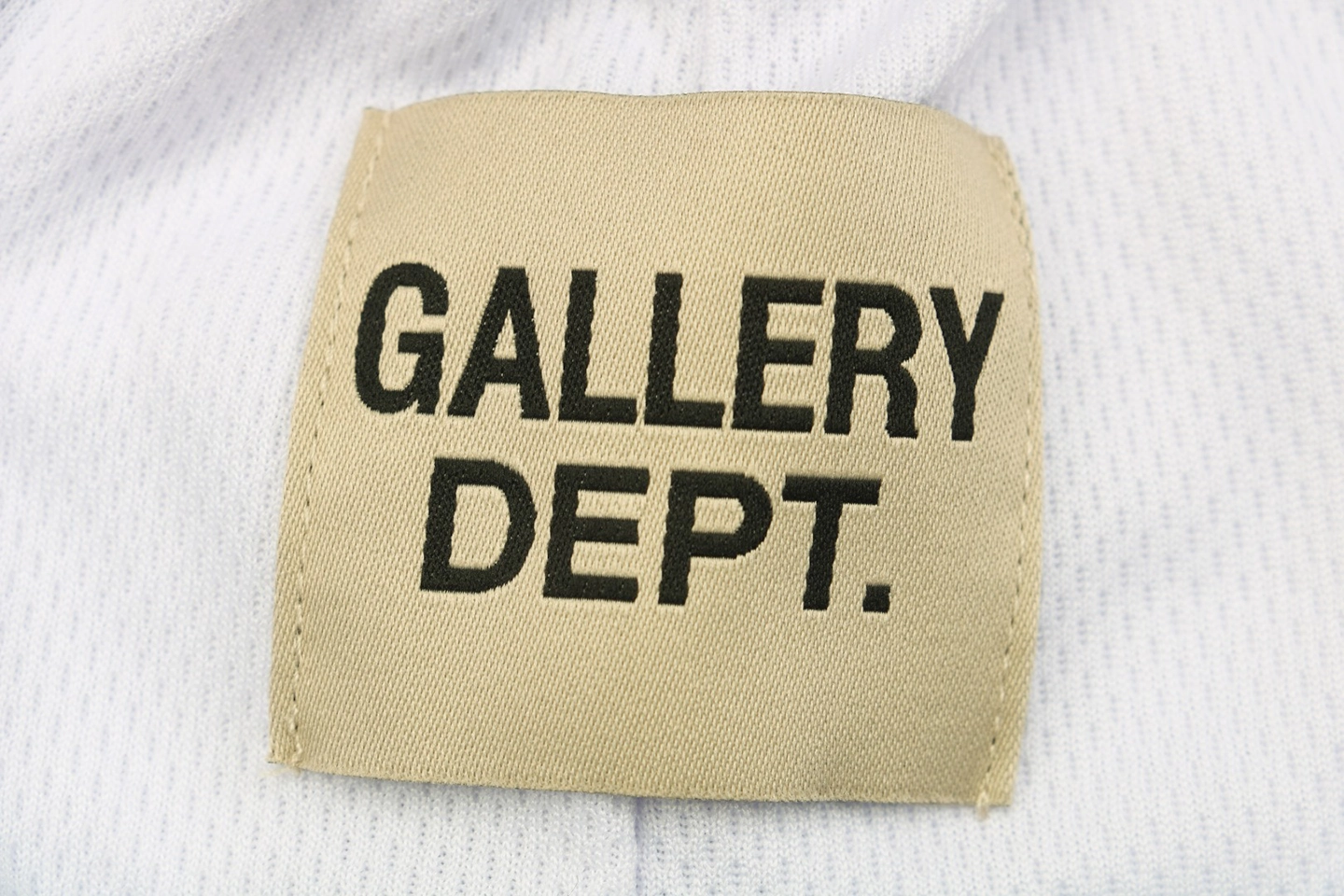 The Gallery Dept English Letter Mesh Basketball Shorts fuse athletic utility with bold streetwear aesthetics. Crafted from lightweight breathable mesh, they offer all-day comfort in hot weather. The prominent English text print adds visual energy, while the elastic waistband with drawstring provides a secure custom fit. With a relaxed silhouette and structured lines, these shorts are ideal for off-duty styling or casual hoop sessions.