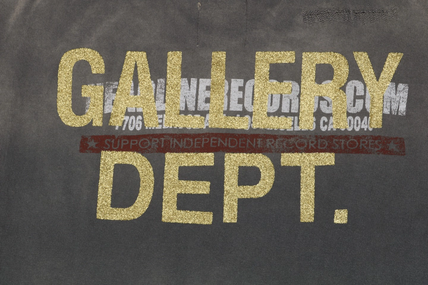 Gallery Dept Punk Vinyl Glitter Letter Print T-Shirt draws from the rebellious spirit of punk rock culture, combining retro vinyl record elements with bold glitter-text typography. The scattered lettering and shimmering finish create a raw, attention-grabbing aesthetic. Crafted from soft, breathable cotton in a relaxed fit, this tee merges nostalgic energy with modern street sensibility, perfect for expressing individuality and music-inspired attitude.