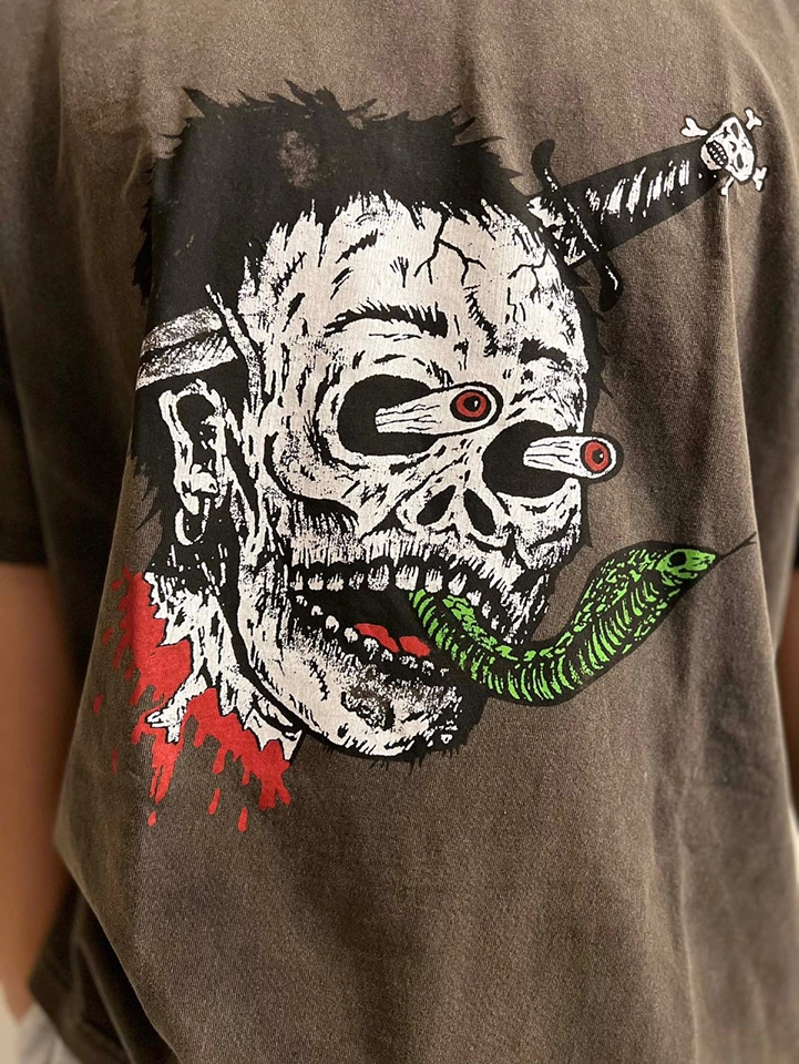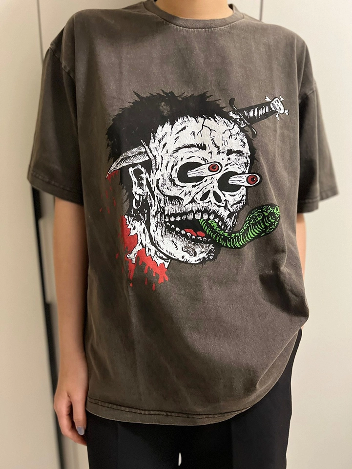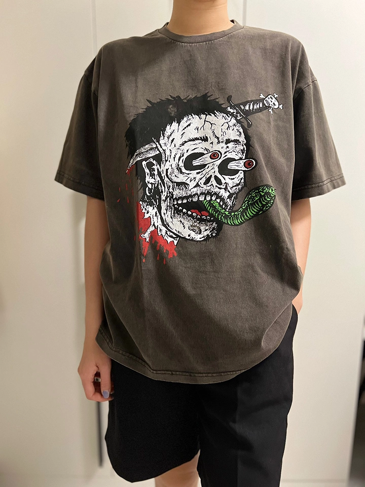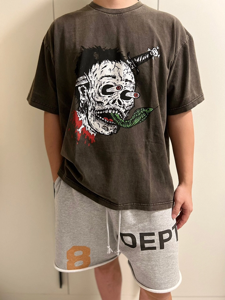 Gallery Dept Sword Skull Print T-Shirt features a bold sword skull print design that perfectly combines street culture and art. The fusion of the skull and sword pattern symbolizes strength, rebellion, and individuality. The unique print uses contrasting colors, making the T-shirt visually striking. Made from high-quality fabric, it offers comfort and excellent breathability, perfect for daily wear, especially during the summer months. Whether paired with jeans, joggers, or shorts, this T-shirt easily creates a powerful street style.
