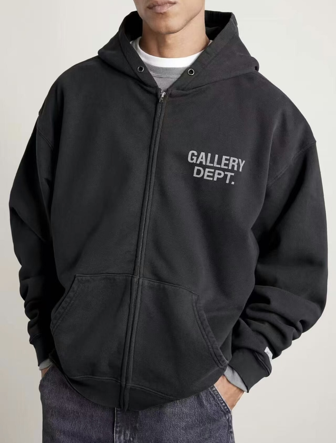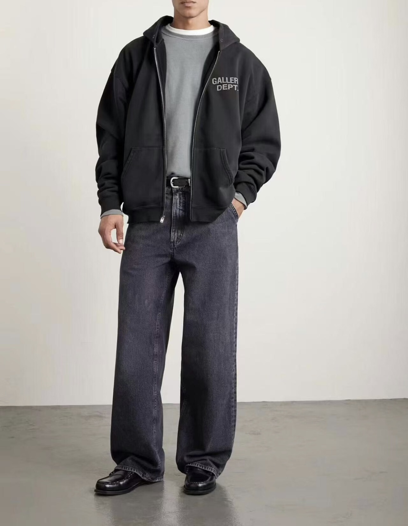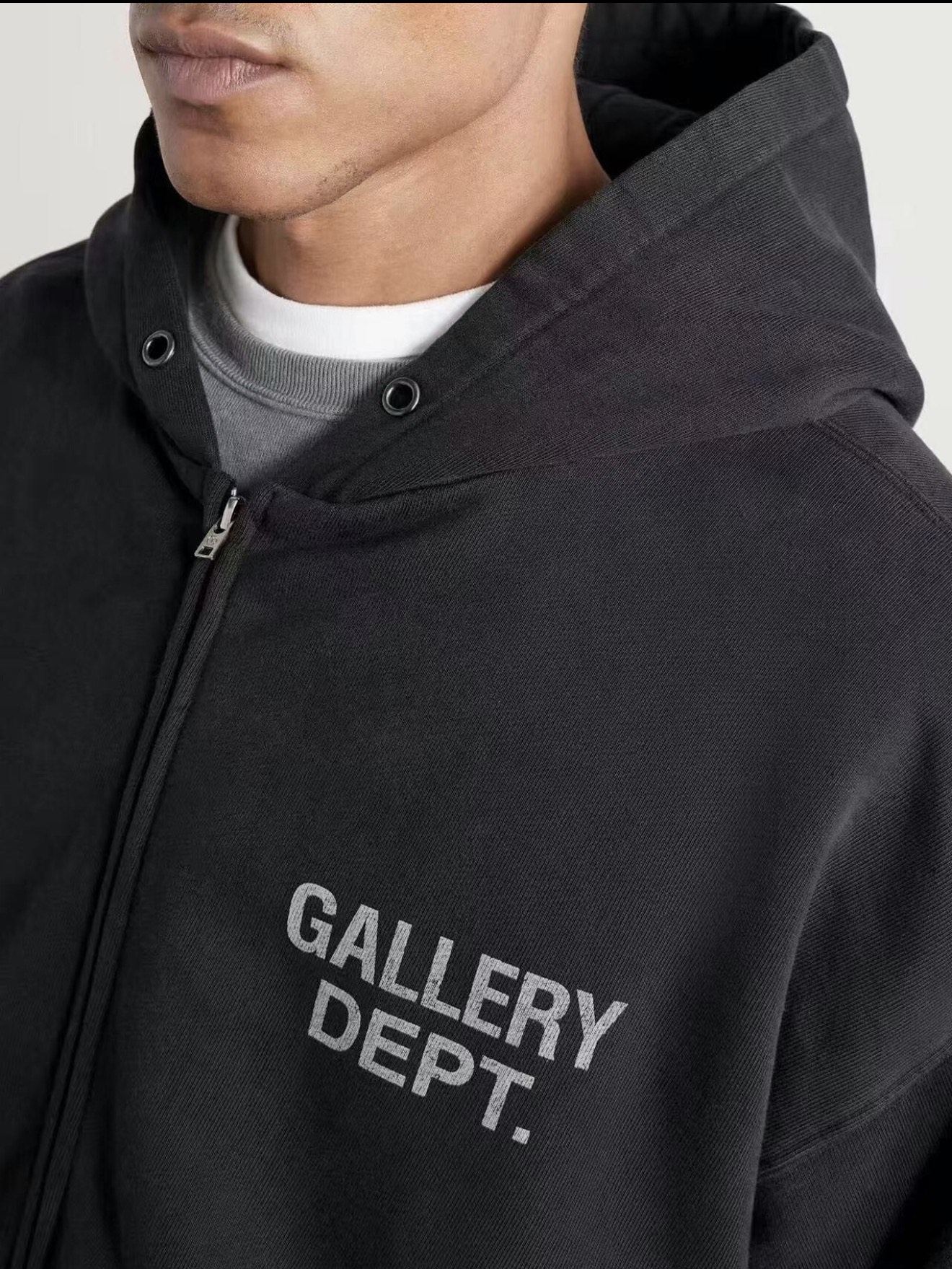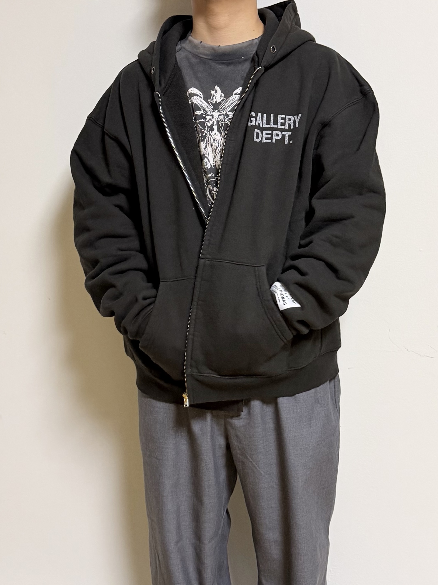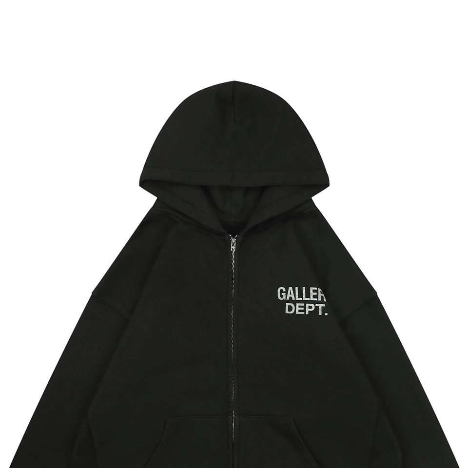 Finished with a custom-molded G logo zipper, the hoodie delivers smooth functionality and elevated detailing. Whether paired with distressed denim, sweatpants, or layered with outerwear, this Gallery Dept zip hoodie perfectly embodies relaxed luxury streetwear.