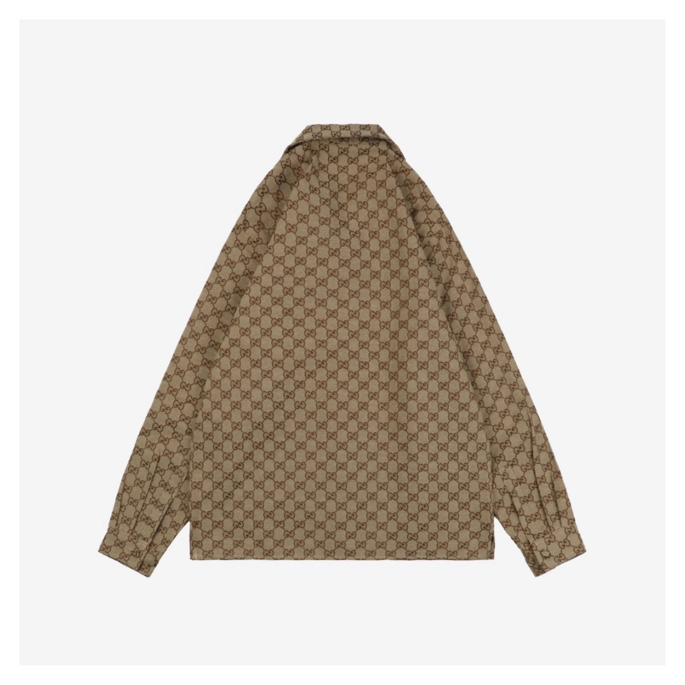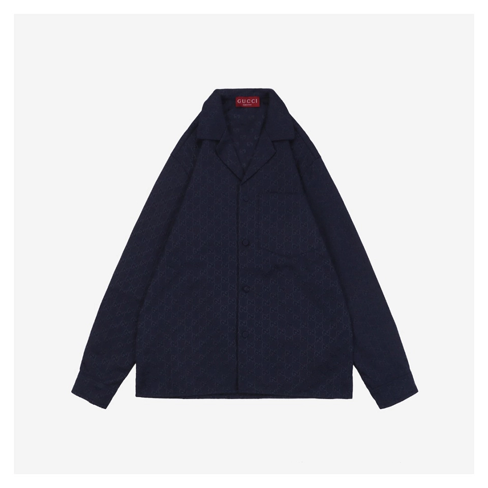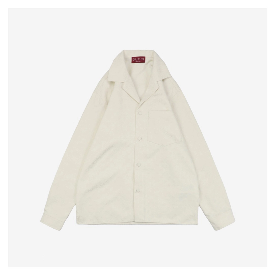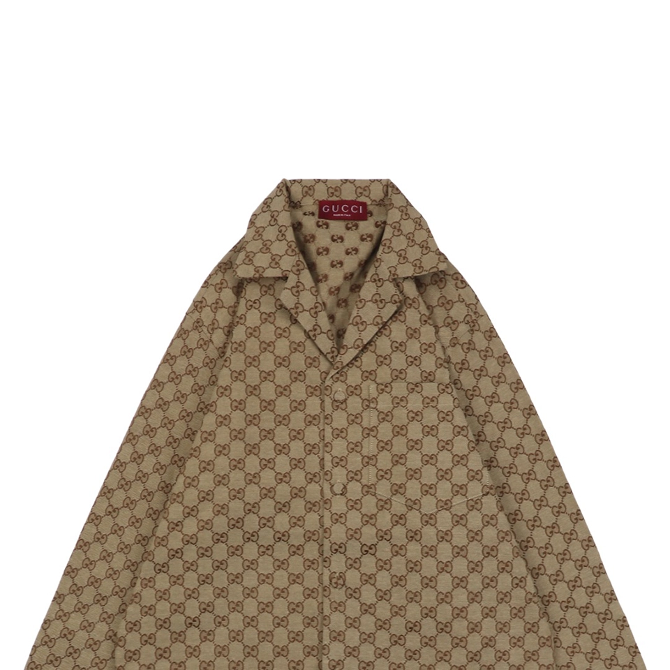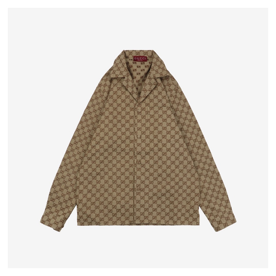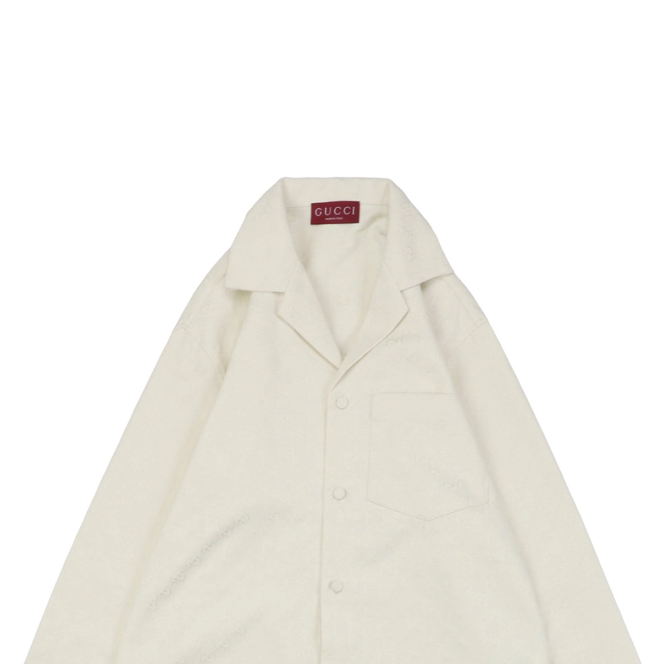 This long-sleeve shirt features a luxurious jacquard weave, intricately woven with the iconic GG monogram pattern, reflecting the brand’s heritage and sophistication. Crafted from premium cotton or silk-blend fabric, it offers a soft, breathable, and smooth touch, ideal for year-round wear. The classic spread collar and button-up front enhance its refined and timeless appeal, while the standard or relaxed fit options make it versatile for both formal and casual occasions. Whether paired with tailored trousers for a polished look or layered under a jacket or trench coat, this piece embodies signature blend of elegance and contemporary fashion.