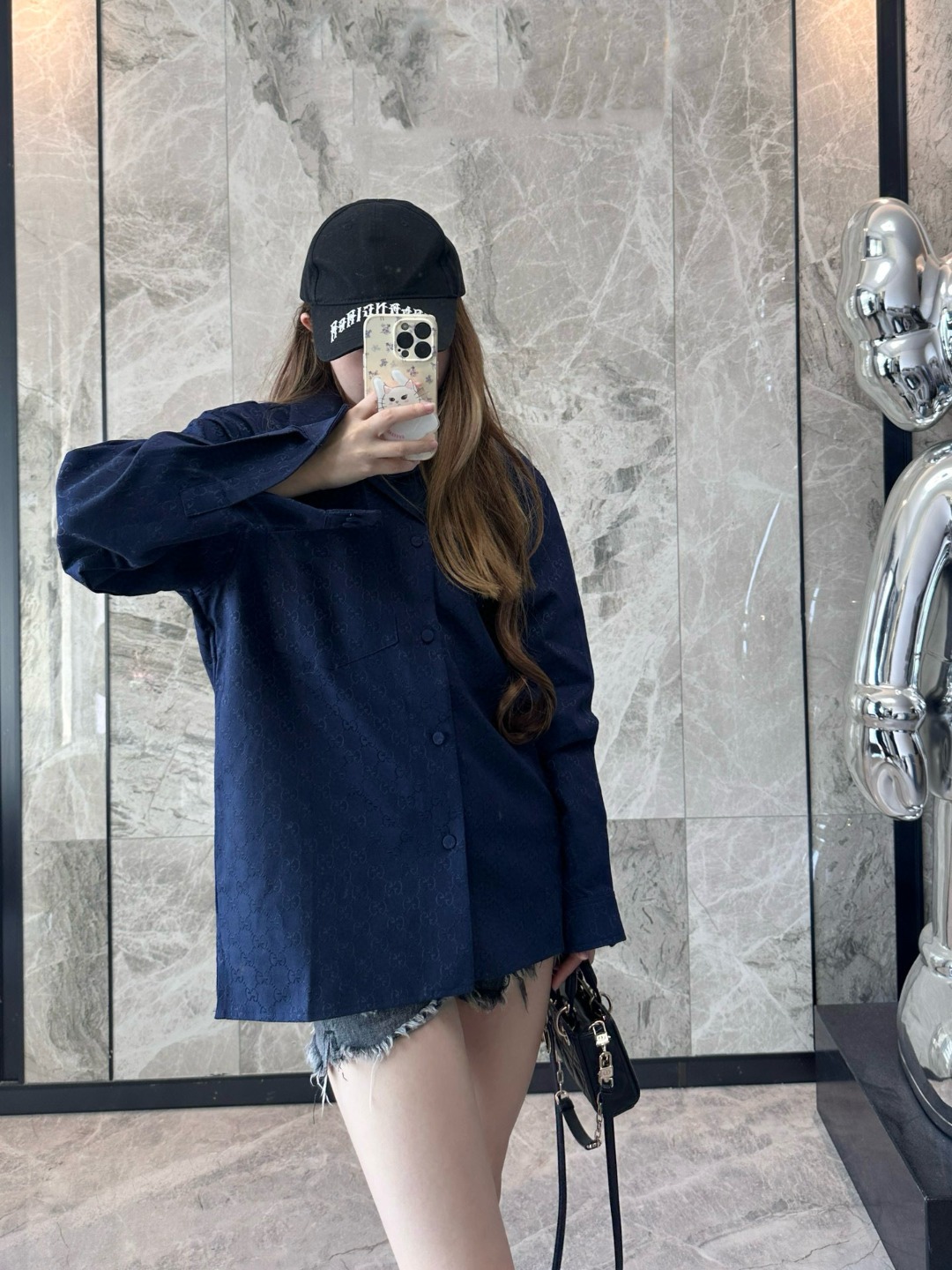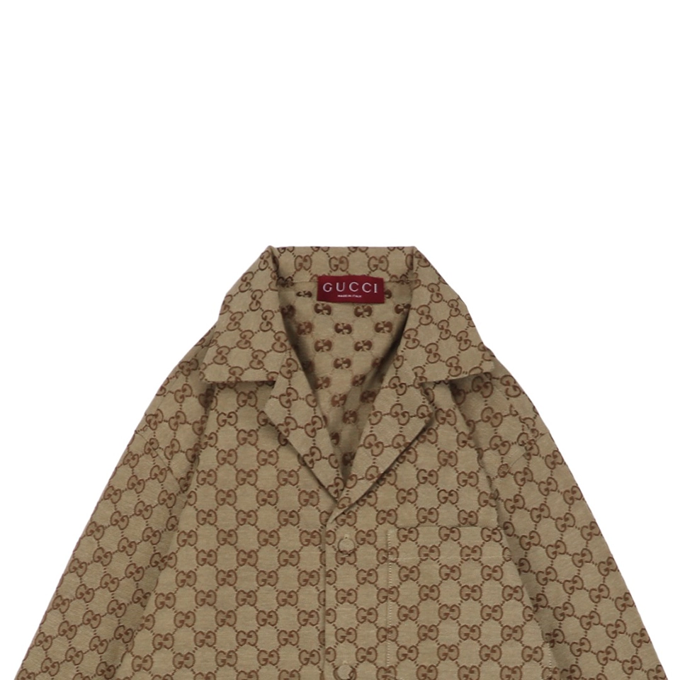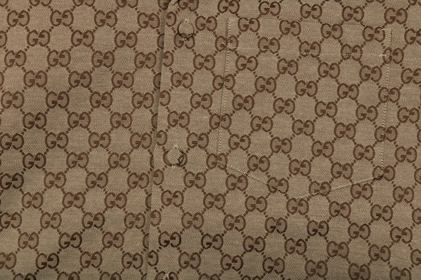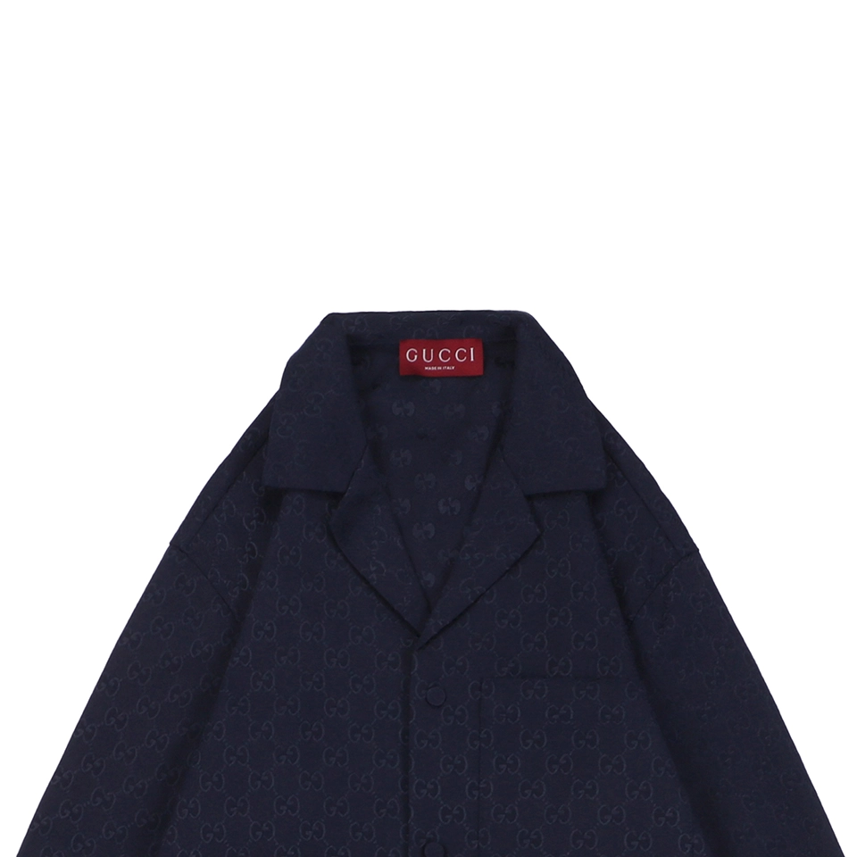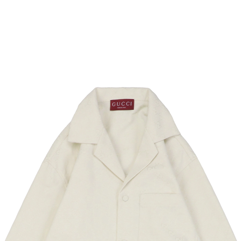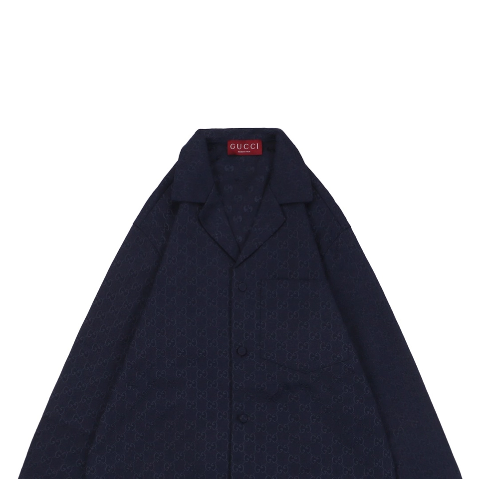 This long-sleeve shirt features a luxurious jacquard weave, intricately woven with the iconic GG monogram pattern, reflecting the brand’s heritage and sophistication. Crafted from premium cotton or silk-blend fabric, it offers a soft, breathable, and smooth touch, ideal for year-round wear. The classic spread collar and button-up front enhance its refined and timeless appeal, while the standard or relaxed fit options make it versatile for both formal and casual occasions. Whether paired with tailored trousers for a polished look or layered under a jacket or trench coat, this piece embodies signature blend of elegance and contemporary fashion.
