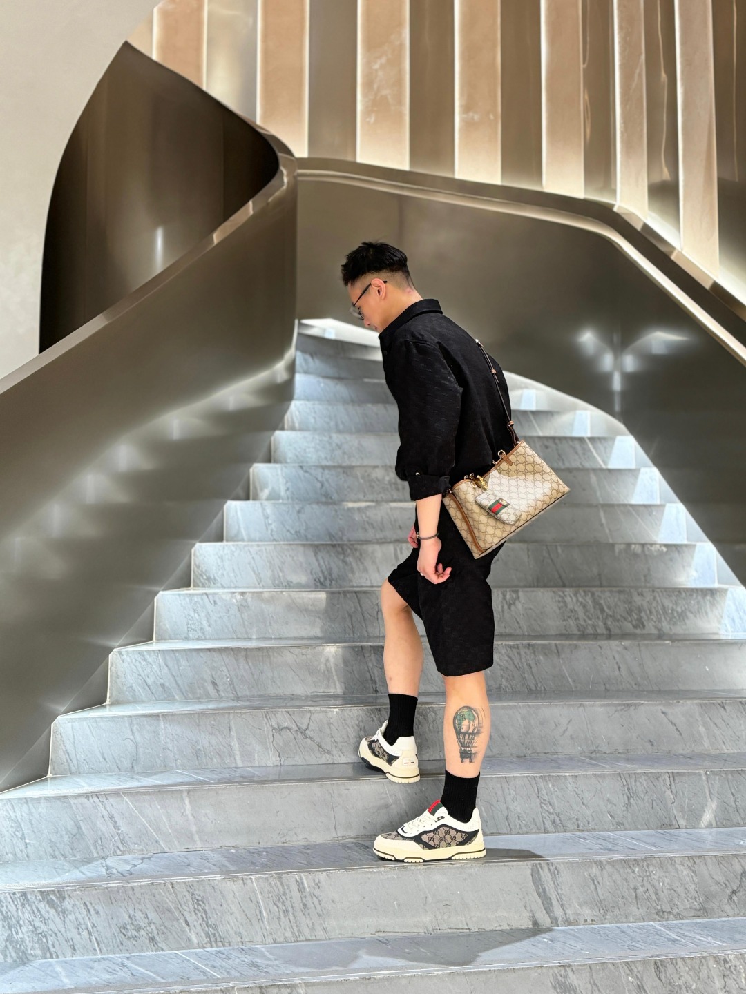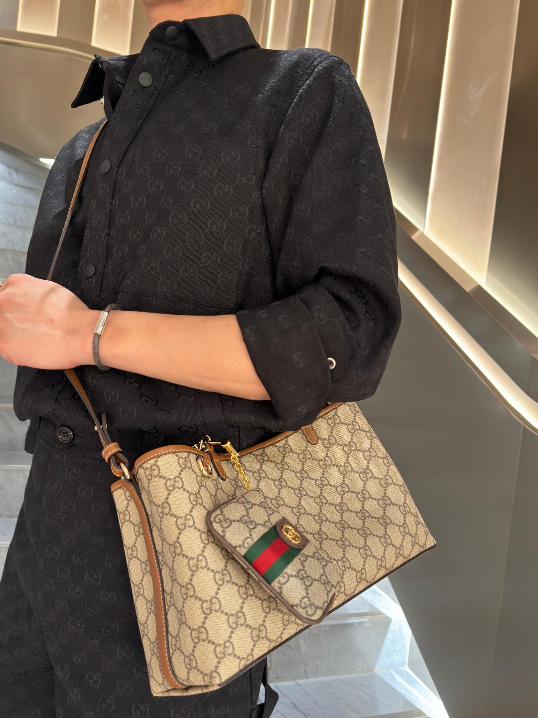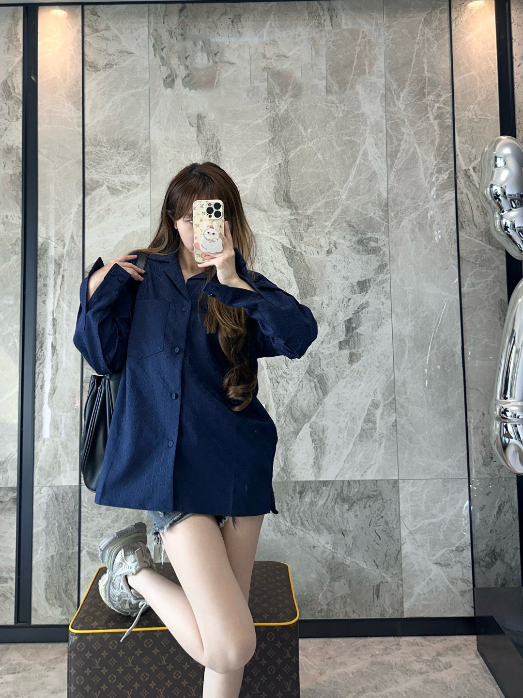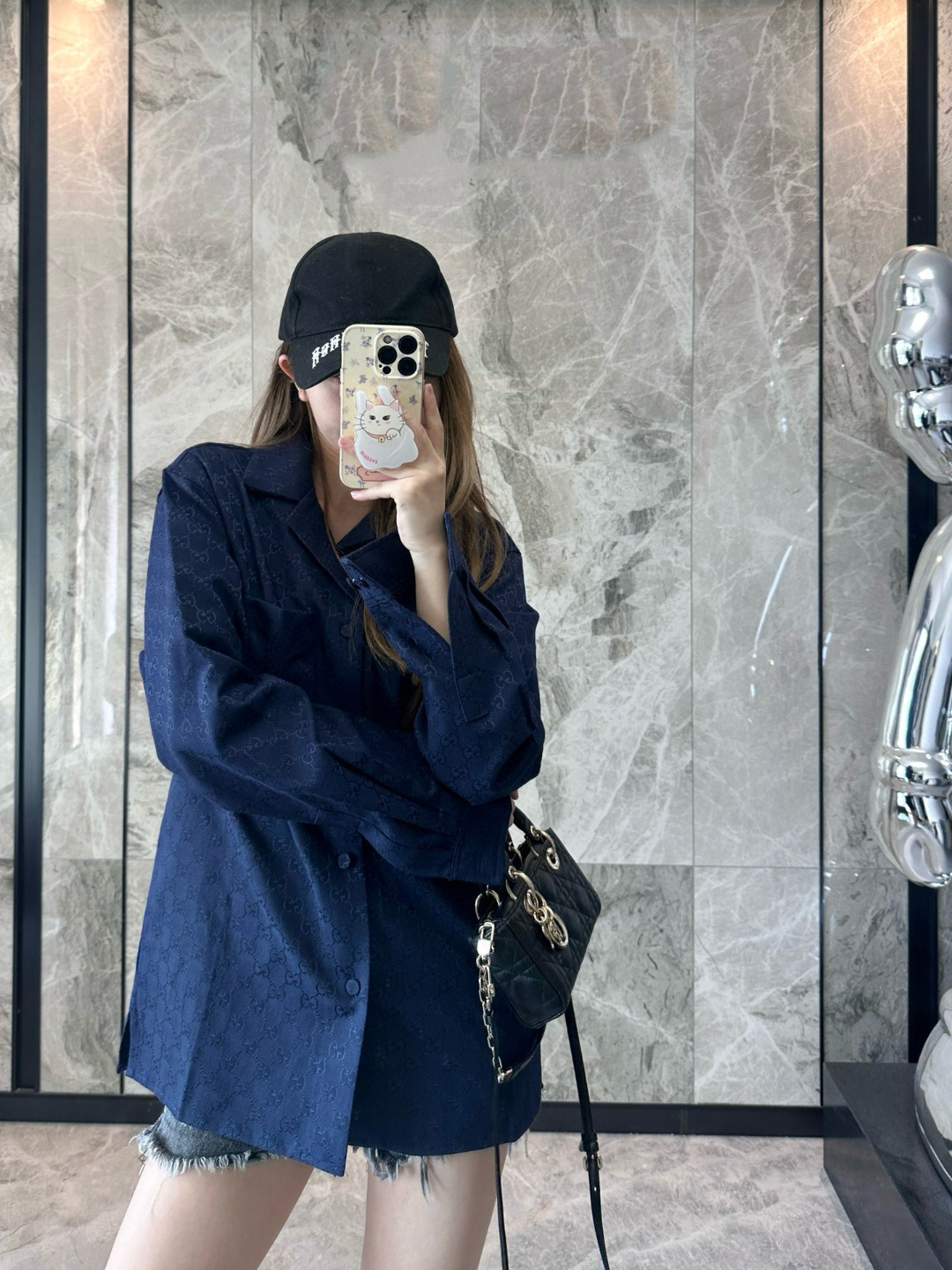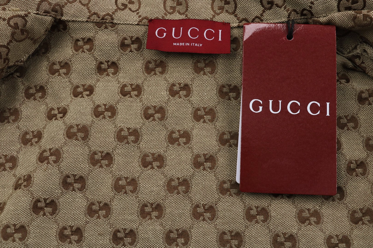 This long-sleeve shirt features a luxurious jacquard weave, intricately woven with the iconic GG monogram pattern, reflecting the brand’s heritage and sophistication. Crafted from premium cotton or silk-blend fabric, it offers a soft, breathable, and smooth touch, ideal for year-round wear. The classic spread collar and button-up front enhance its refined and timeless appeal, while the standard or relaxed fit options make it versatile for both formal and casual occasions. Whether paired with tailored trousers for a polished look or layered under a jacket or trench coat, this piece embodies signature blend of elegance and contemporary fashion.