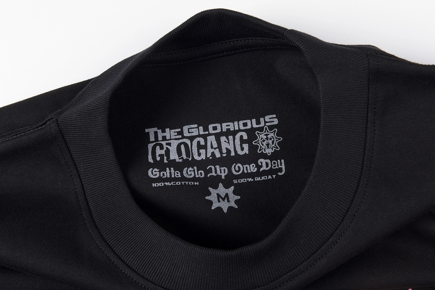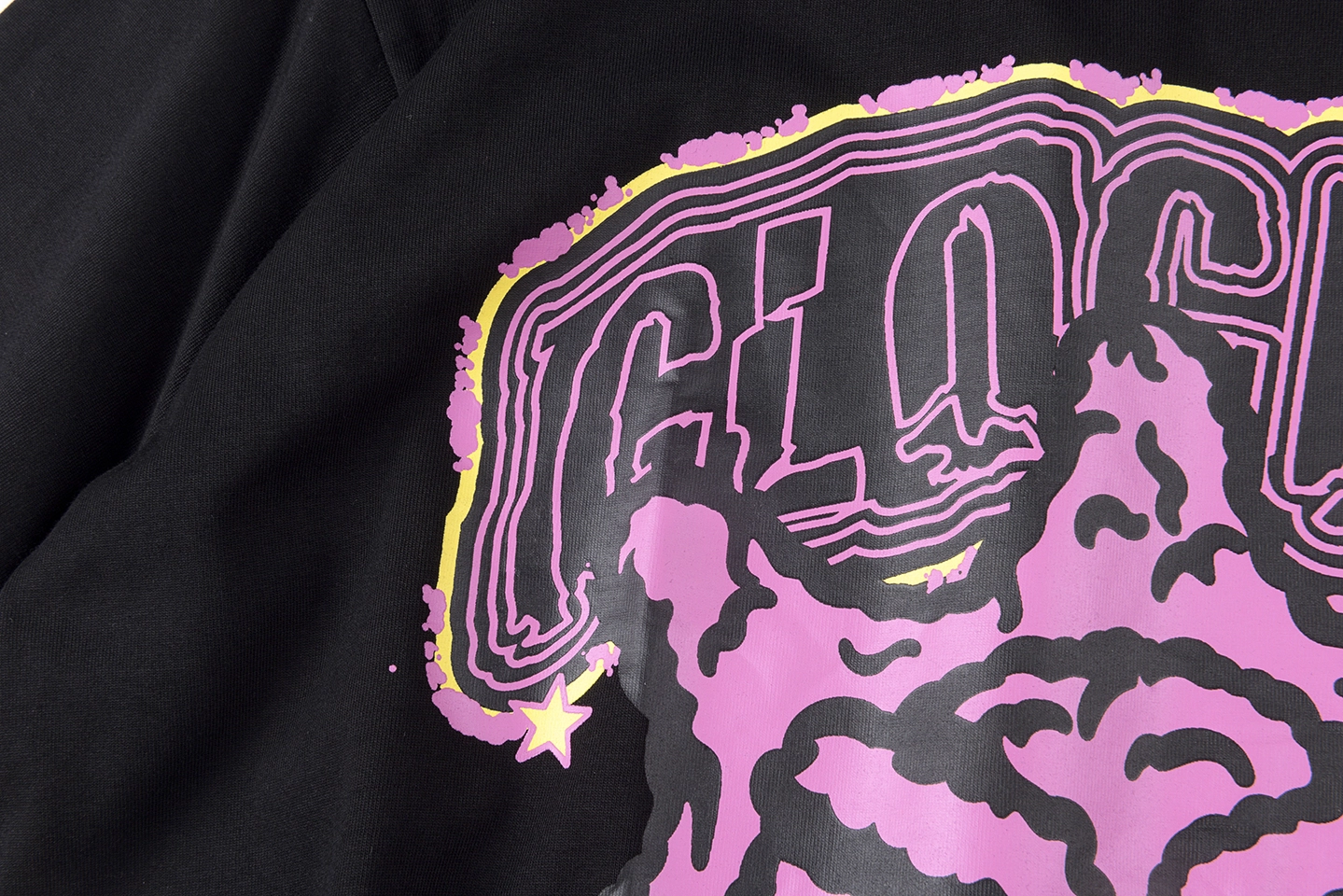 The Glo Gang Brainstar Graphic T-Shirt features a bold front print of the brand’s signature star-shaped mascot, reimagined in a surreal pink brain texture with glowing yellow eyes and a gas mask motif. The “GLOGANG” logo arches overhead in a stylized graffiti font outlined in sparkles, adding a rebellious and psychedelic touch. Crafted from soft cotton with a relaxed fit, this tee blends dark streetwear energy with pop-art-inspired flair.