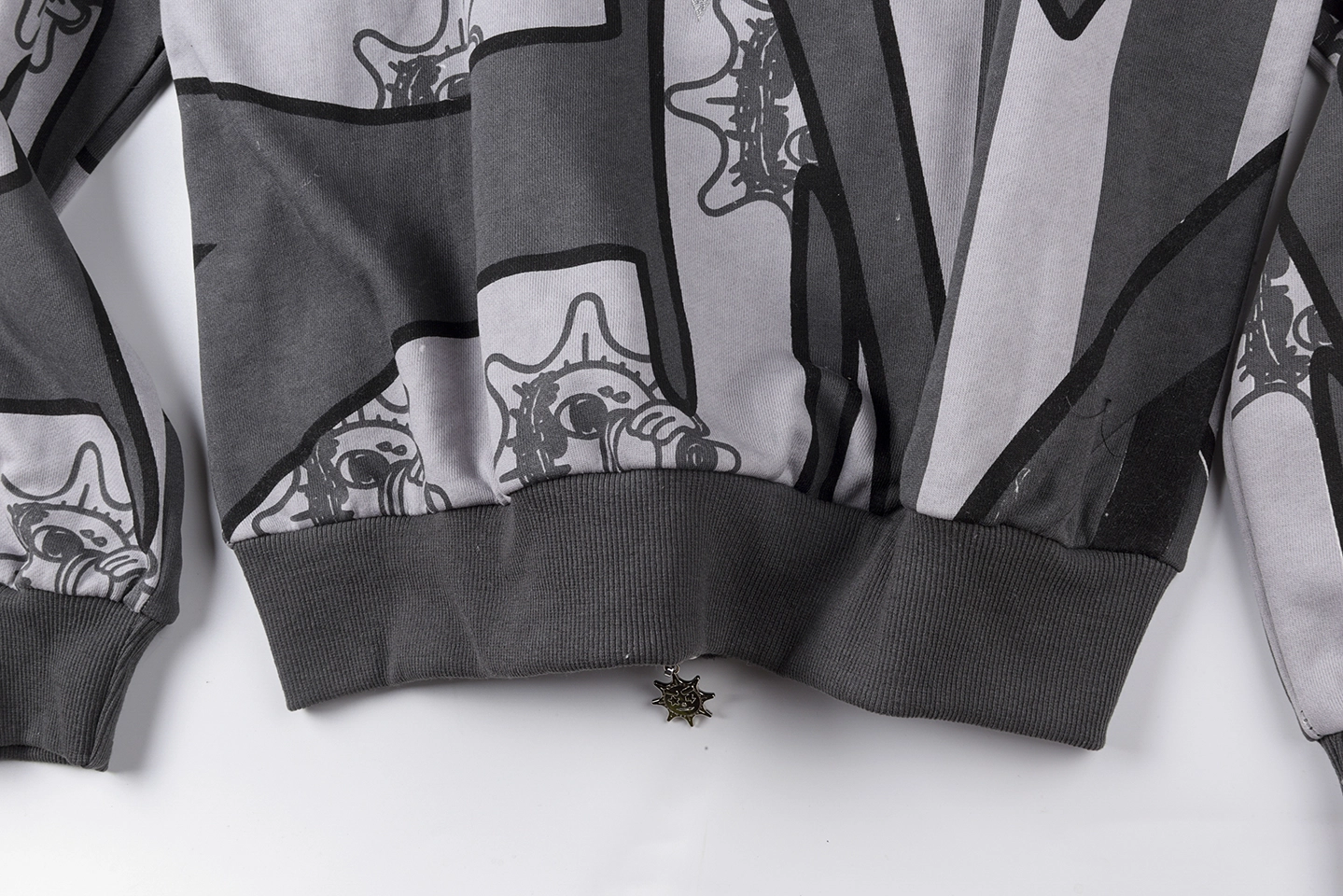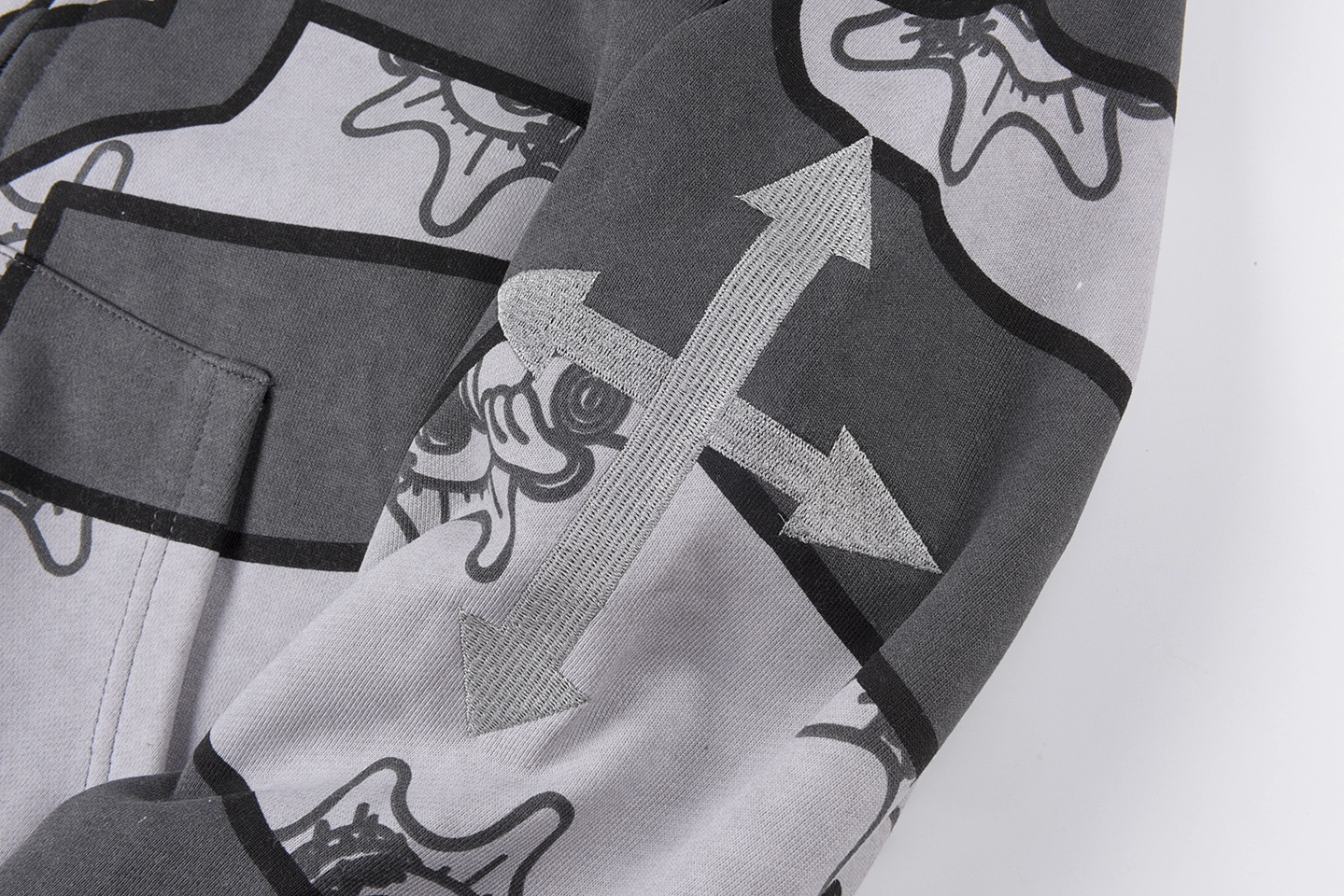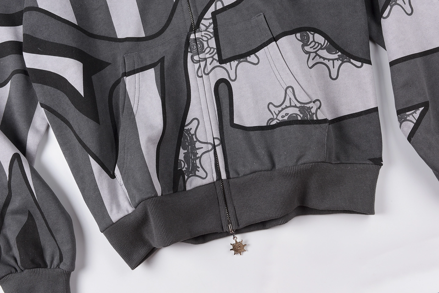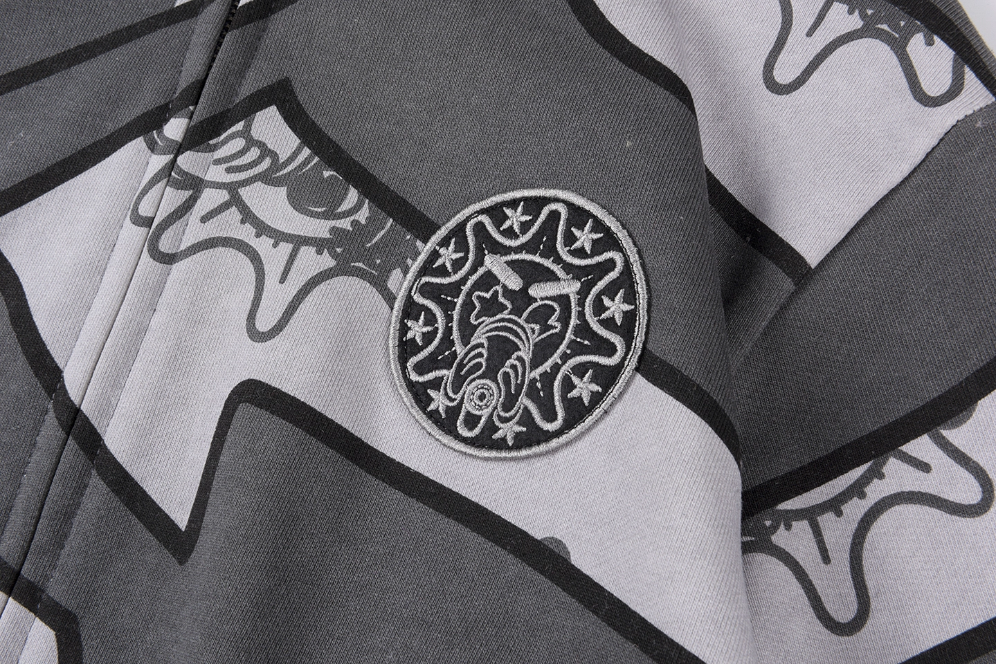 The Glo Gang Glory Boyz Stripe Mask Full-Zip Hoodie fuses surreal streetwear with unmistakable attitude. Featuring bold grayscale stripes interwoven with cartoonish Glo Gang sun-face motifs, this hoodie grabs attention with a full-zip mask hood complete with 3D spikes and vivid yellow star-eye embroidery. The chenille “Big Glo” back patch and “Glory Boyz” chest logo inject iconic branding, while ribbed cuffs and hem deliver a snug, comfortable fit. Perfect for fans of daring aesthetics and cultural symbolism.