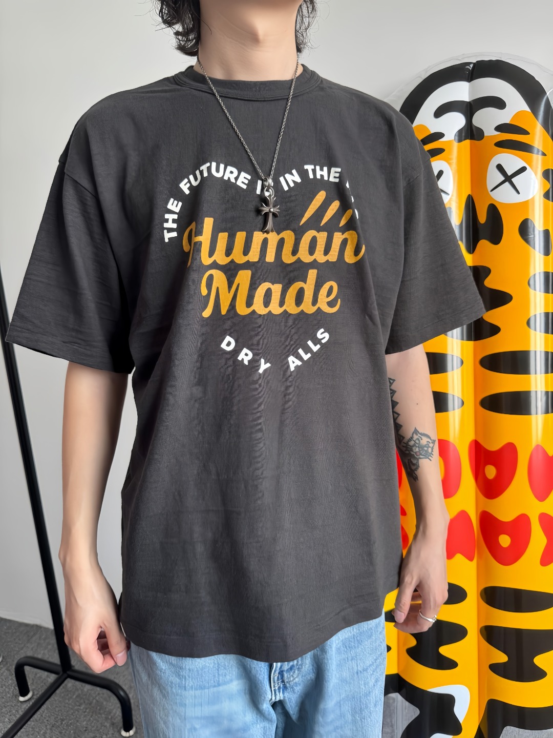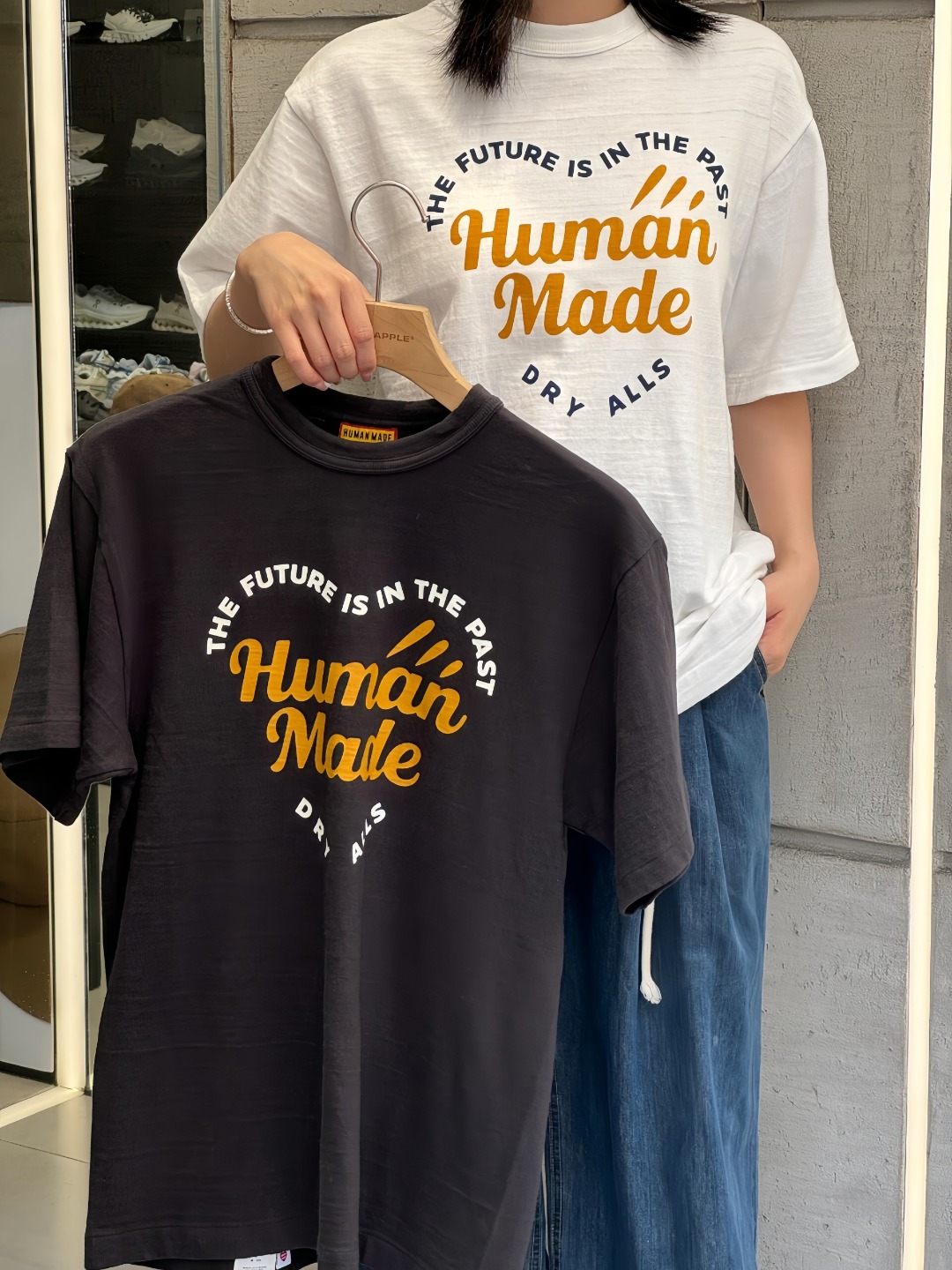 The Human Made Heart Logo Letter Print T-Shirt is an icon of the brand’s identity, featuring the bold red heart emblem paired with large-font branding across the chest. Made from fine cotton, it offers breathable softness for everyday wear. The centered heart-and-letter graphic is both playful and powerful, reflecting Human Made’s signature retro-meets-future aesthetic. A classic cut and crew neckline complete this easy-to-style staple with global streetwear appeal.