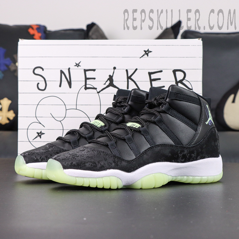Air Jordan 11 Retro GS ‘Inner Beast’ reimagines the classic silhouette with a fierce and playful twist for younger sneakerheads. The upper features black leather paired with a tonal textured mudguard replacing the usual patent shine, giving the shoe a more rugged edge. Claw mark graphics and a Barely Volt Jumpman on the collar hint at the beast within. Beneath, a white Phylon midsole with full-length Air cushioning ensures comfort, while a glow-in-the-dark outsole adds an electrifying finish.