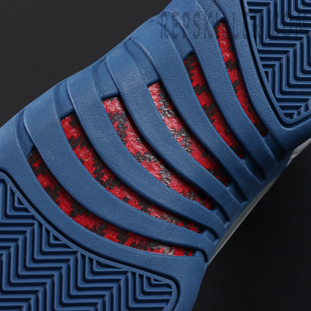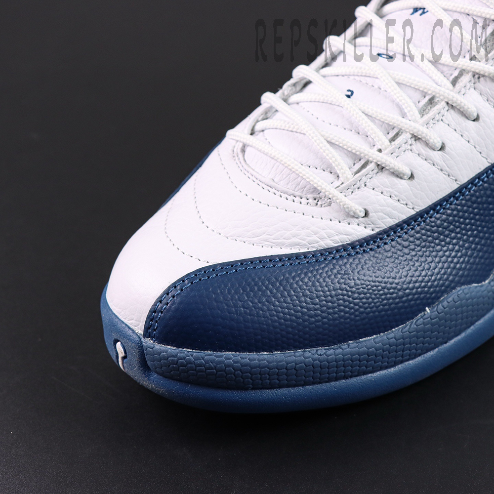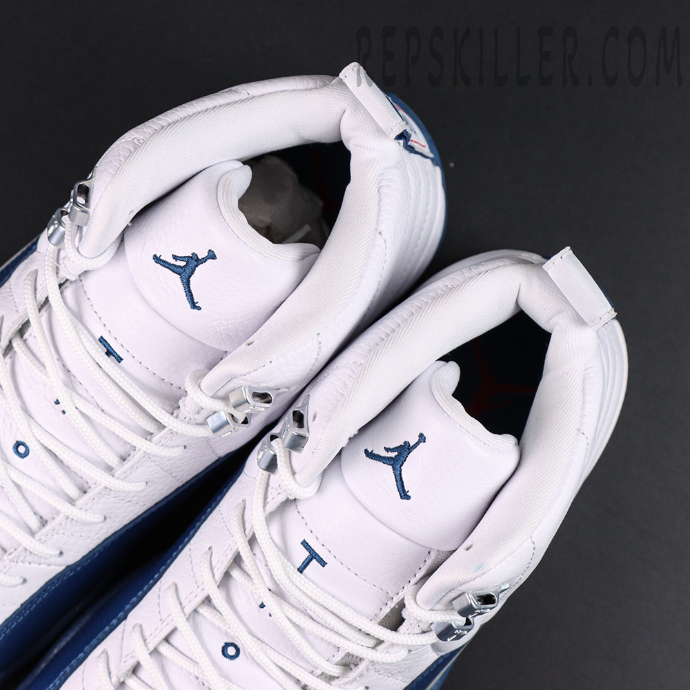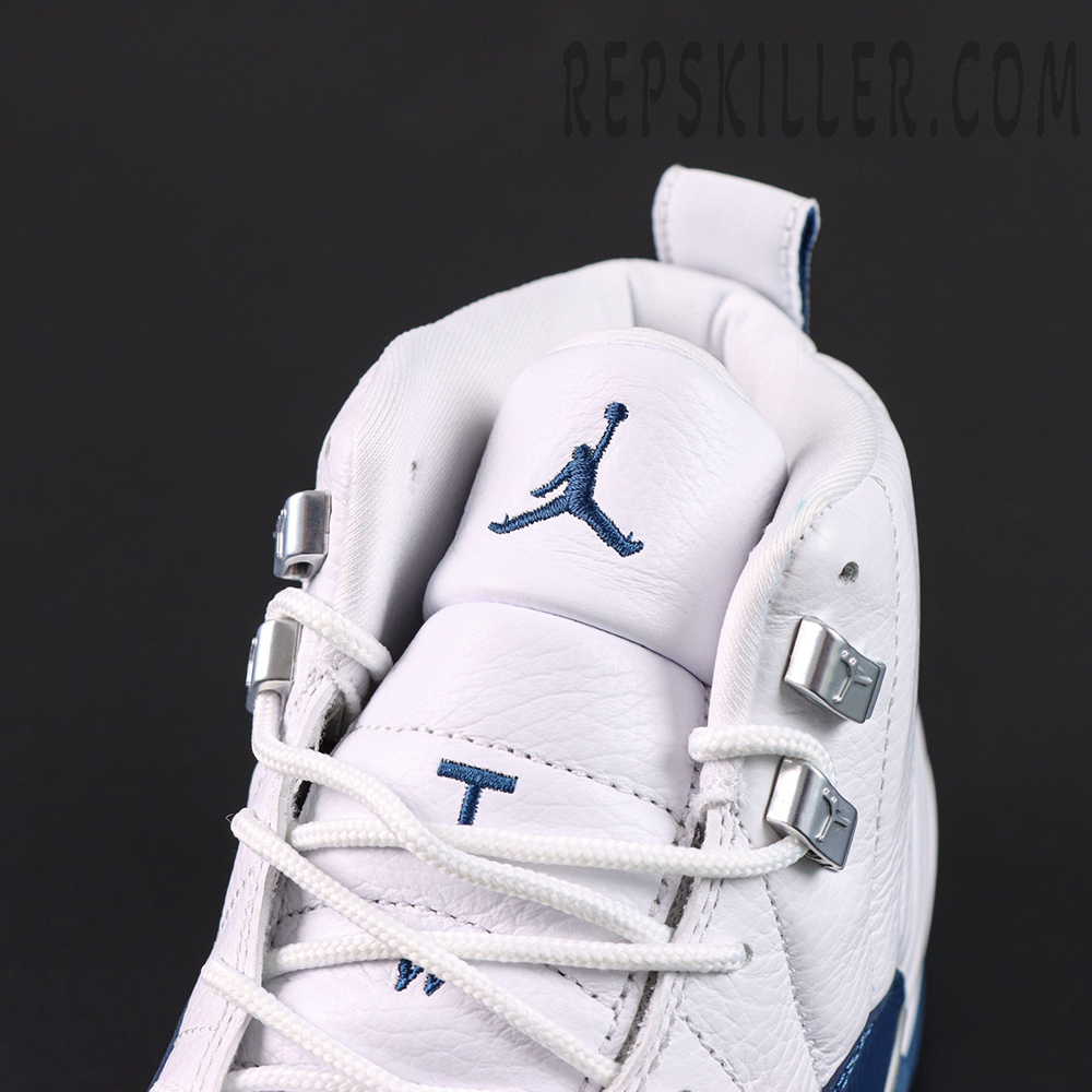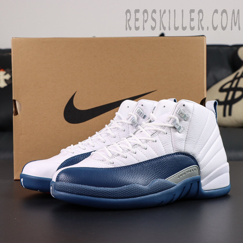 Air Jordan 12 Retro ‘French Blue’ 2025 revisits a classic from 2004 with renewed precision. The upper features white tumbled leather detailed with radiating stitched lines, contrasted by a rich French Blue mudguard in lizard-textured leather. Metallic lace loops, Jumpman accents on the tongue and heel, and a clean midsole design complete the look. Full-length Zoom Air cushioning and carbon fiber plating deliver responsive support, while herringbone outsole pods ensure multi-directional traction.