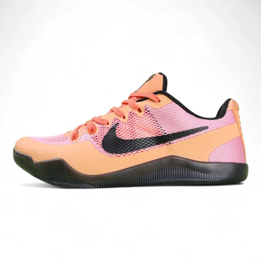 The Kobe 11 Elite Low XDR ‘Barcelona’ is a vibrant basketball sneaker that pays homage to Kobe Bryant’s admiration for FC Barcelona. This low-top model features a Bright Mango engineered mesh upper, complemented by Black accents on the Swoosh, tongue, and midsole. Bright Crimson detailing adds a dynamic contrast, reflecting the bold colors associated with the Catalan football club. Equipped with Lunarlon foam cushioning, this sneaker delivers responsive support and court-ready comfort.