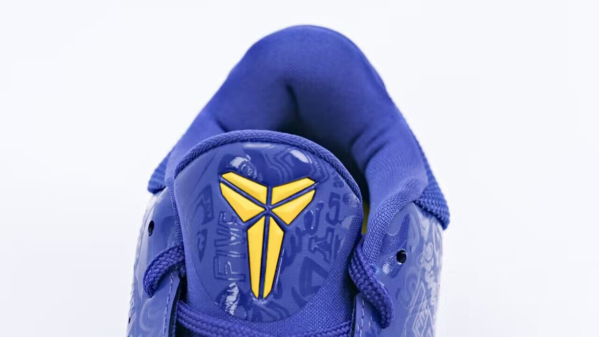The Zoom Kobe 5 Protro ‘5 Rings’ is equipped with Nike’s Zoom Air technology, specifically adapted for basketball performance. It features Zoom Air units in the heel and forefoot, which deliver responsive cushioning and impact protection. This setup helps players maintain comfort while offering the explosive energy return needed during jumps and sprints.