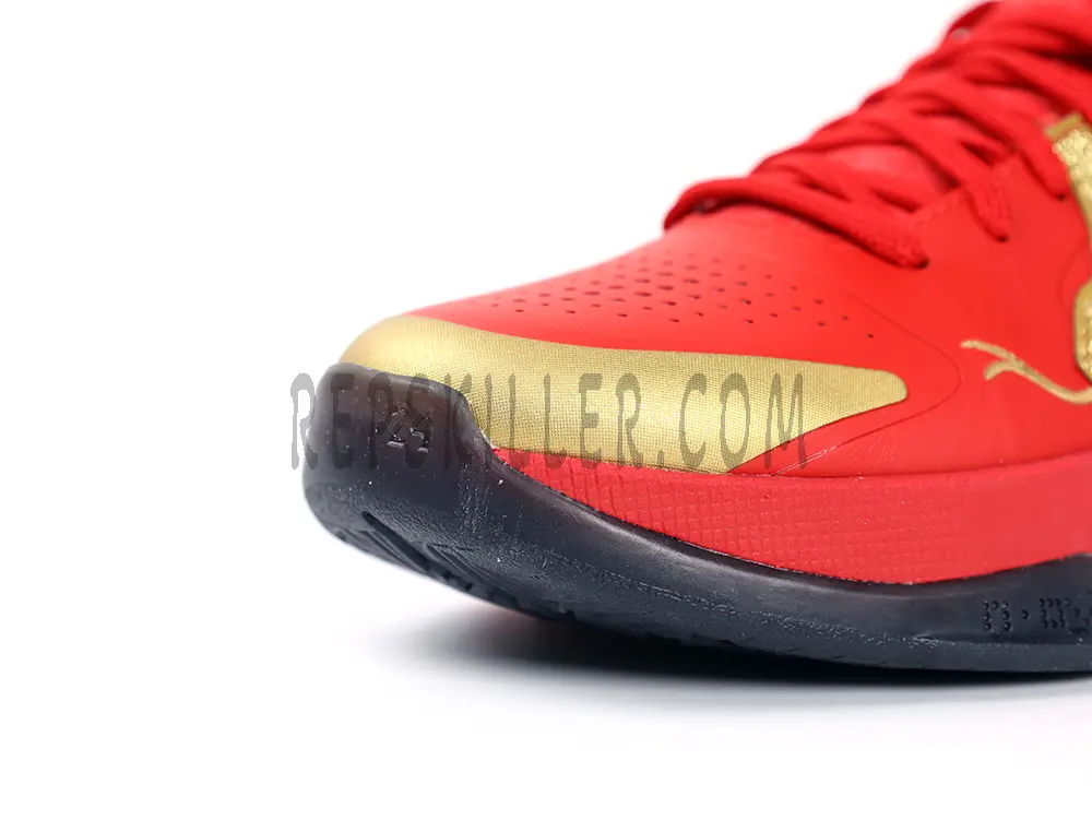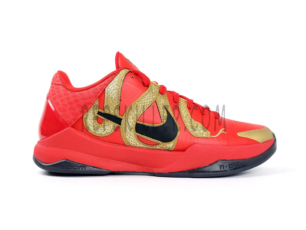 The Kobe 5 Protro ‘Year of the Mamba – University Red’ pays homage to Kobe Bryant’s legacy with a striking design that embodies passion and resilience. Drenched in a bold University Red colorway, the sleek synthetic upper features subtle snake-scale textures, celebrating Kobe’s mamba mentality. Black accents and gold details enhance the dynamic look, while performance-driven features like Zoom Air cushioning and a low-profile silhouette provide unmatched responsiveness and agility.