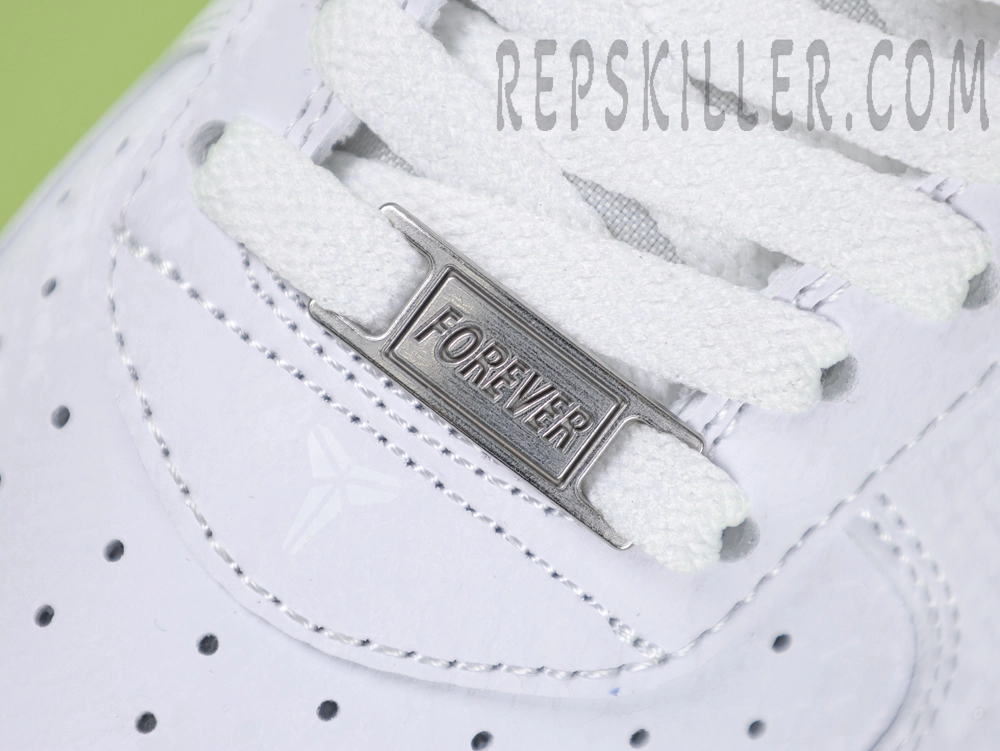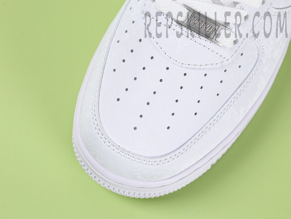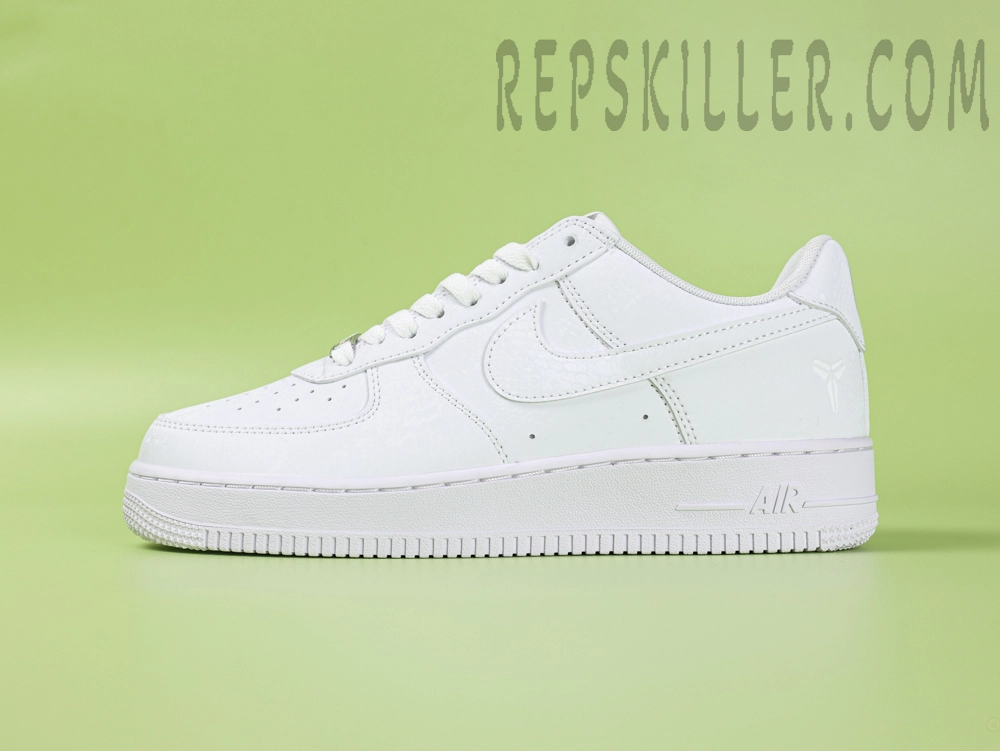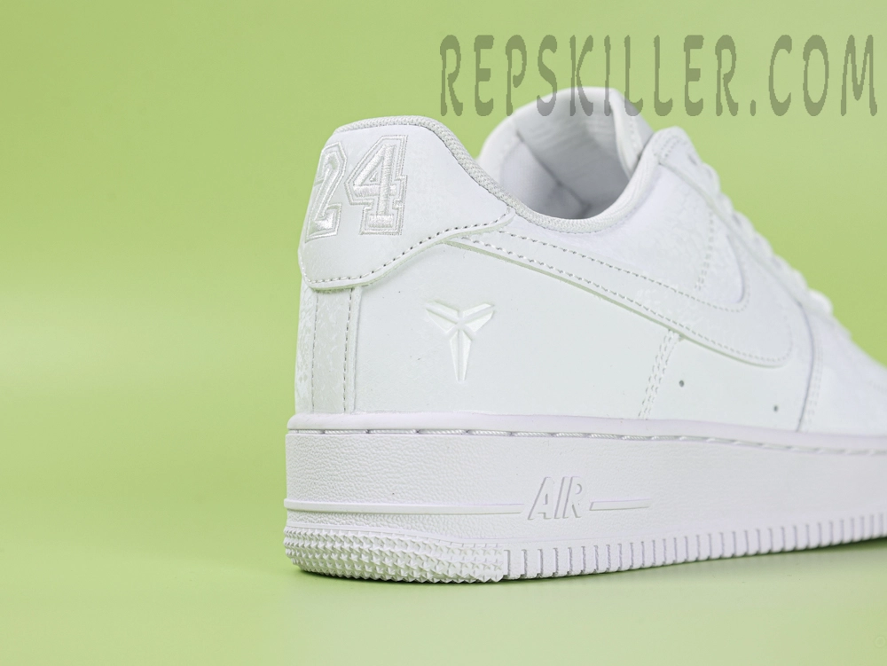 The Kobe Bryant x Air Force 1 Low ‘Forever White’ pays tribute to the Mamba legacy with a minimalist all-white leather build. Premium smooth leather covers the upper, with tonal stitching for a clean aesthetic. The Kobe sheath logo is embossed on the heel, while perforations on the toe box ensure breathability. A crisp white Air midsole and rubber outsole deliver lightweight cushioning and traction, keeping the look timeless yet functional.